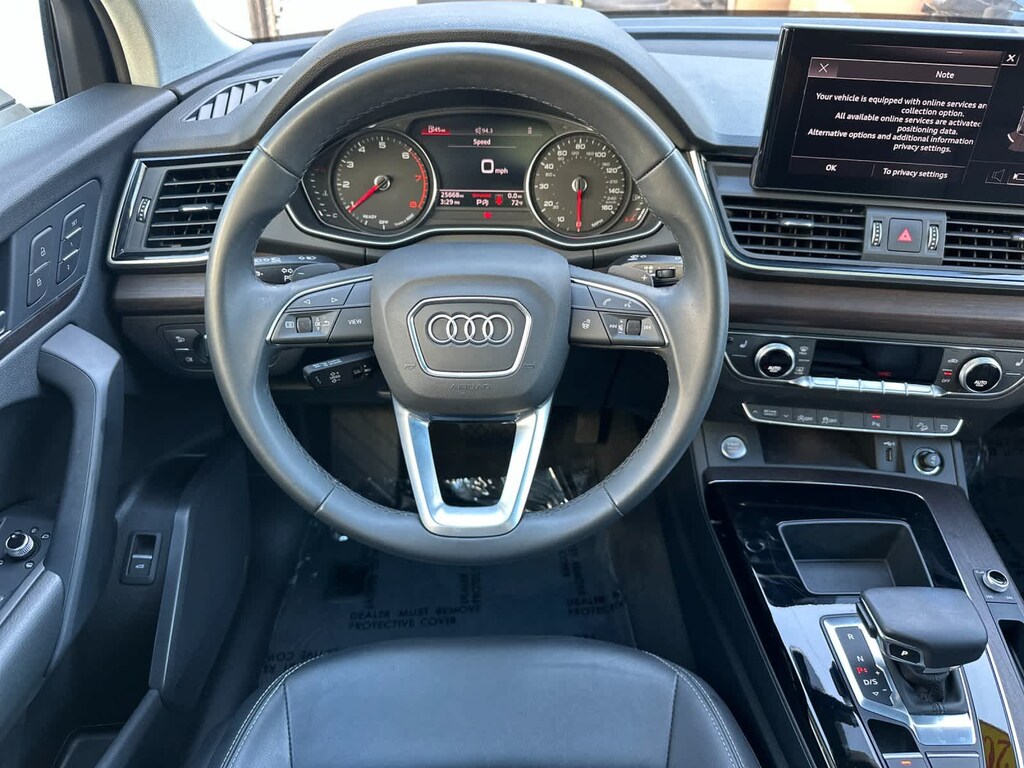 2023 Audi Q5 40 Premium quattro Mythos Black Metallic quattro Still Under Factory Warranty, LOW LOW MILES!, Service Contract Available, New Tires, Leather Seats, Q5 40 Premium quattro, 4D Sport Utility, 2.0L Turbocharged, 7-Speed Automatic S tronic, quattro, Mythos Black Metallic, Black w/Leather Seating Surfaces, Alloy wheels, Audi Advanced Key, Auto-Dimming Power Folding Exterior Mirrors, Convenience Package, Delay-off headlights, Driver Seat & Mirror Memory, Front Center Armrest, Front fog lights, Front reading lights, Garage door transmitter: HomeLink, Genuine wood console insert, Heated front seats, Heated Steering Wheel, Leather Seating Surfaces, Rear seat center armrest, Security system, SiriusXM w/360L, Telescoping steering wheel, Wheels: 19 5-Arm-Pylon Design w/Matte Finish. Clean CARFAX. CARFAX One-Owner.