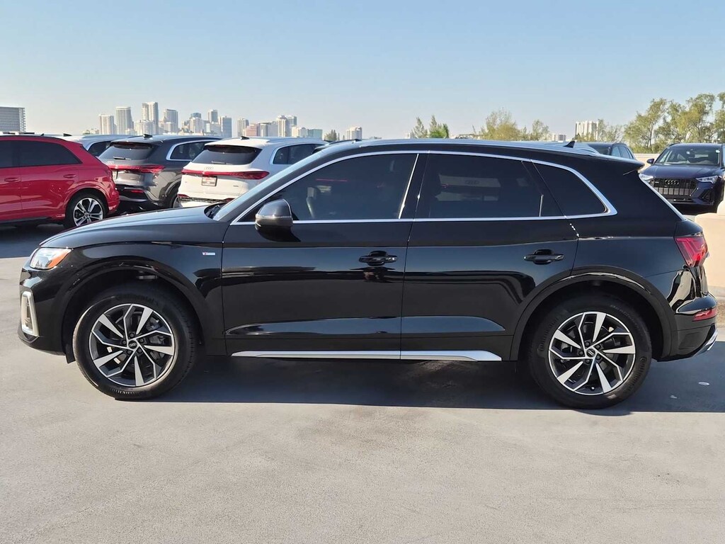 CARFAX One-Owner. Clean CARFAX. Priced below KBB Fair Purchase Price! Q5 Mythos Black Metallic 45 S line Premium quattro 7-Speed Automatic S tronic 2.0L Turbocharged Q5 45 S line Premium quattro, 4D Sport Utility, 2.0L Turbocharged, 7-Speed Automatic S tronic, quattro, Mythos Black Metallic, Black w/Leather Seating Surfaces, Audi Advanced Key, Auto-Dimming Power Folding Exterior Mirrors, Brake assist, Convenience Package, Delay-off headlights, Driver Seat Memory, Exterior Parking Camera Rear, Front fog lights, Heated Steering Wheel, Panoramic Sunroof, Rain sensing wipers, Rear fog lights, Rear window wiper, SiriusXM w/360L, Speed-Sensitive Wipers, Variably intermittent wipers, Wheels: 19 5-Double-Arm Design Bi-Color Finish.