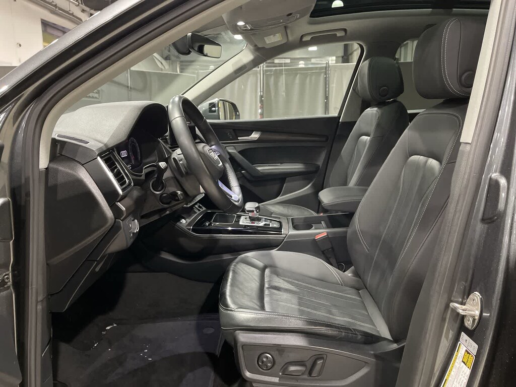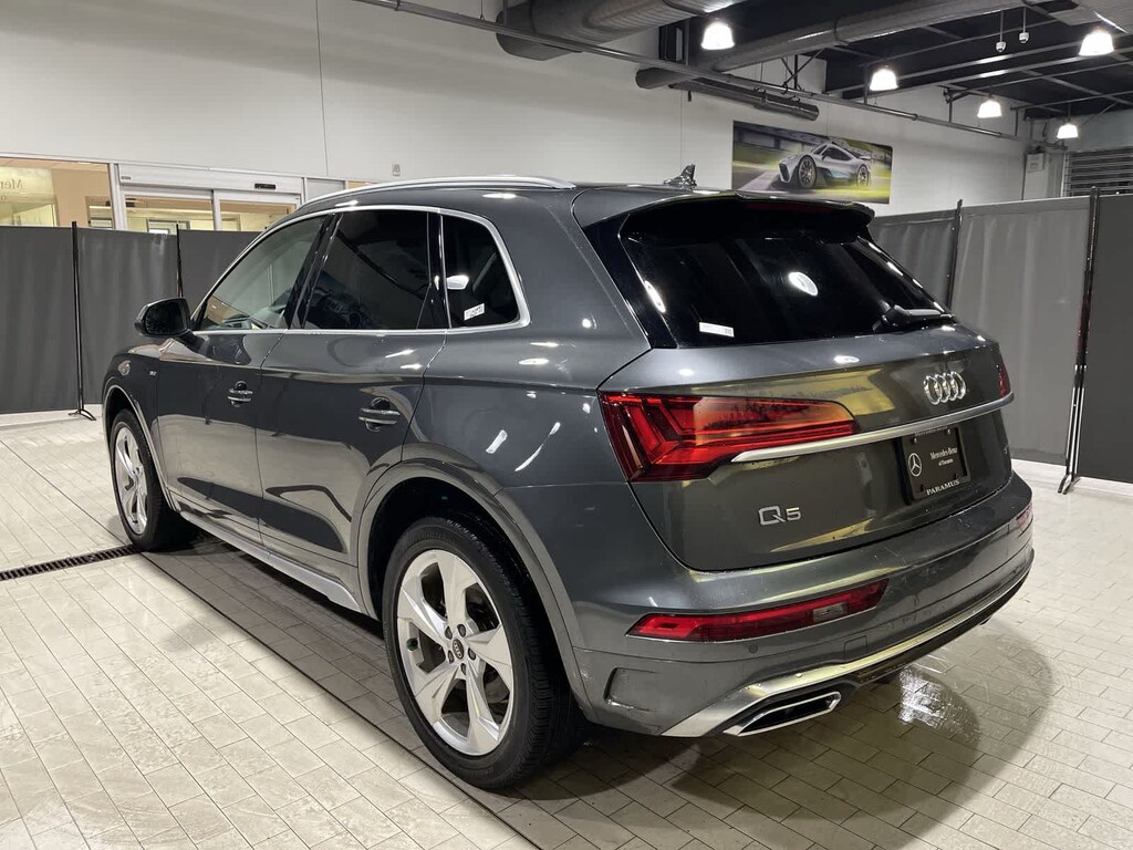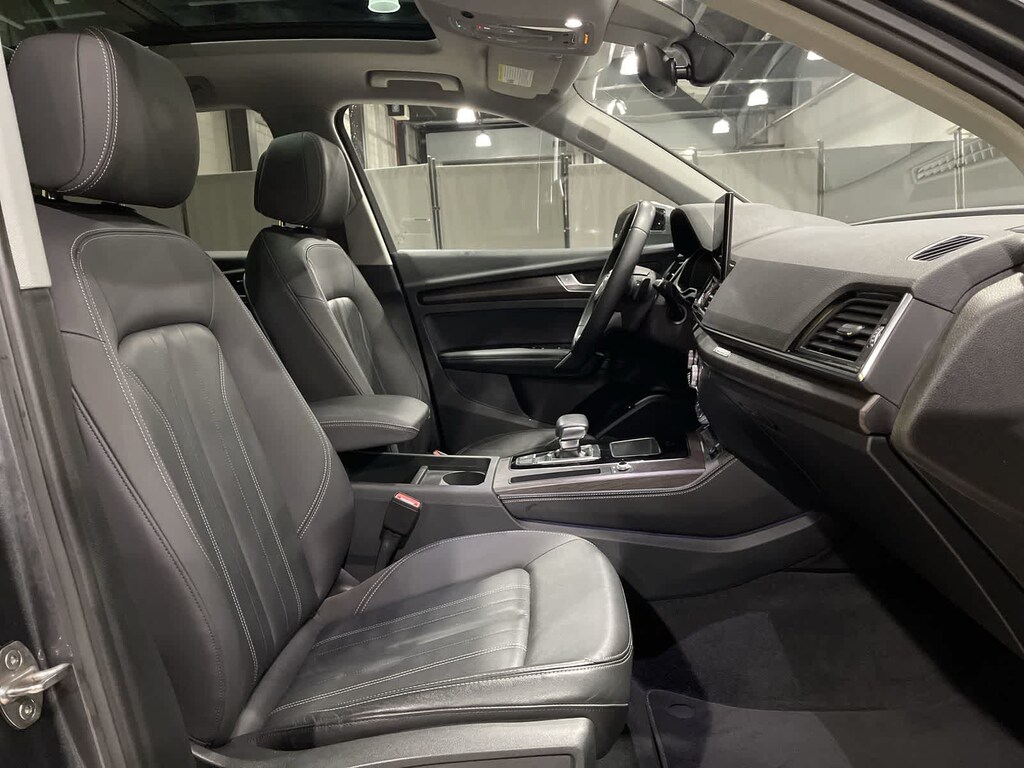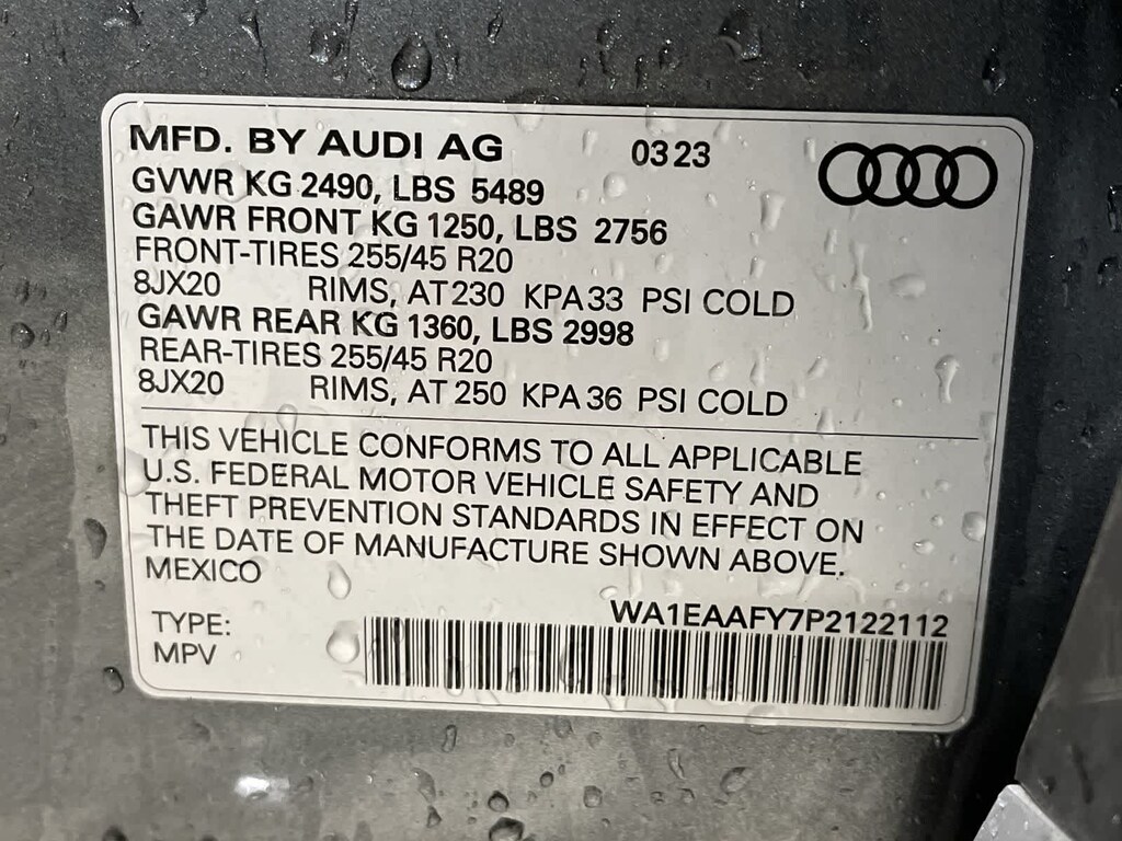 2023 Audi Q5 45 S line Premium quattro Daytona Gray Pearl Effect Black w/Leather Seating Surfaces, 10 Speakers, ABS brakes, Alloy wheels, Audi Active Lane Assist, Audi Advanced Key, Audi Beam-Rings, Audi Connect PLUS, Audi Virtual Cockpit Plus, Auto-Dimming Power Folding Exterior Mirrors, Bang & Olufsen Sound System w/3D Sound, Compass, Convenience Package, Driver Seat Memory, Electronic Stability Control, Front dual zone A/C, Gray-Brown Birch Natural Wood Inlays, Hands-On Detection Steering Wheel, Heated 8-Way Power Front Bucket Seats, Heated door mirrors, Heated front seats, Heated Steering Wheel, Illuminated entry, Leatherette Covered Center Console & Door Armrests, Low tire pressure warning, MMI Navigation Plus, Navigation Package, Panoramic Sunroof, Power Adjustable Steering Column, Power Liftgate, Premium Plus Package, Radio: Audi Sound System, Remote keyless entry, SiriusXM w/360L, Top View Camera System, Traction control, Traffic Jam Assist, Wheels: 20 5-Arm Design.