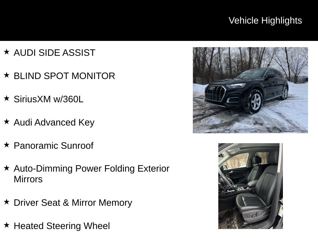 This 2023 Audi Q5 40 Premium quattro is an exceptional choice for the discerning driver. Boasting a sleek Black exterior and a well-appointed interior, this Audi Certified pre-owned vehicle is packed with premium features that will elevate your driving experience.