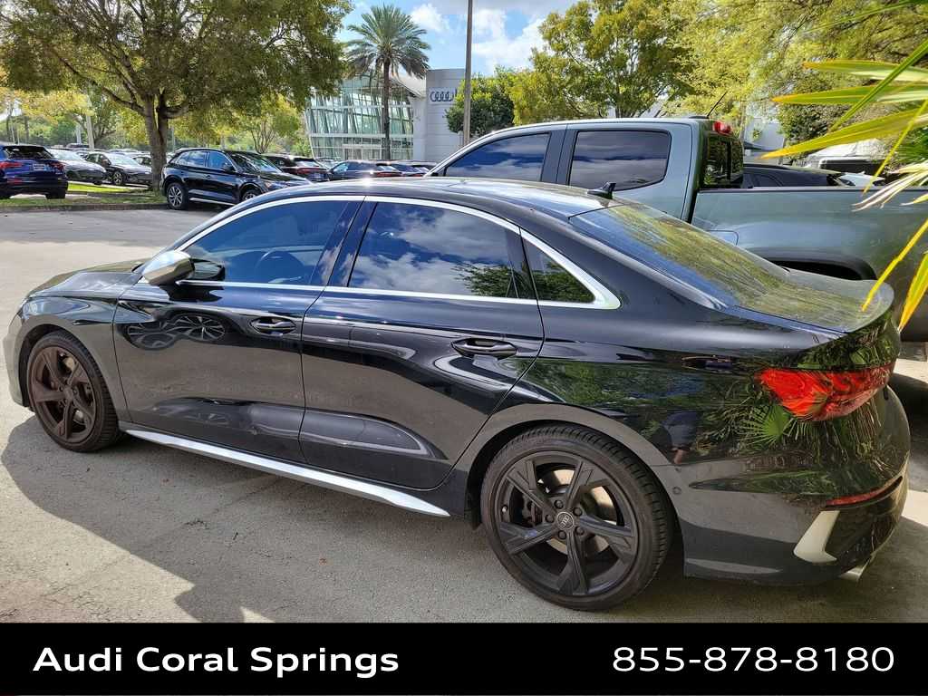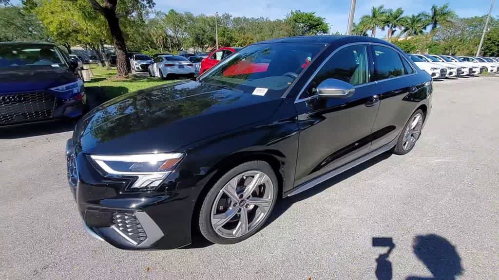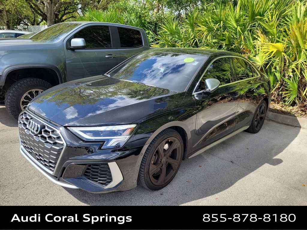 2023 Audi S3 2.0T Premium Plus quattro Mythos Black Metallic, Black w/Rock Gray Stitching w/Fine Nappa Leather Seating Surfaces, Adaptive Cruise Assist w/Lane Guidance, Audi Side Assist w/Rear Cross Traffic Assist, Bang & Olufsen Sound System w/3D Sound (DISC), Convenience Package, Fine Nappa Leather Package, Fine Nappa Leather Seating Surfaces, Power moonroof, Premium Plus Package, Sport Exhaust Resonator.