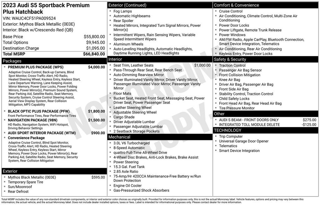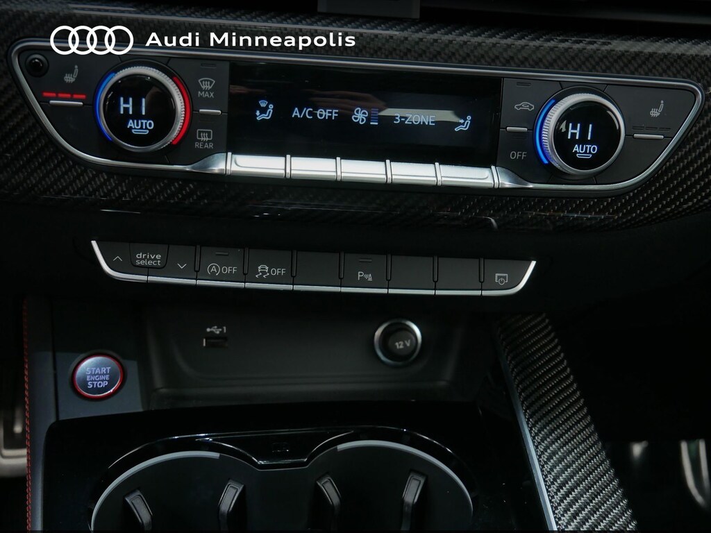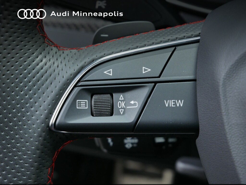 The attention to detail is evident throughout this Audi, from the premium Nappa leather seating surfaces to the advanced driver assistance technologies. The Black Optic Plus package adds a touch of menacing style with its blacked-out exterior accents, while the Audi Sport Interior package elevates the cabin with crescendo red stitching and RS carbon inlays.