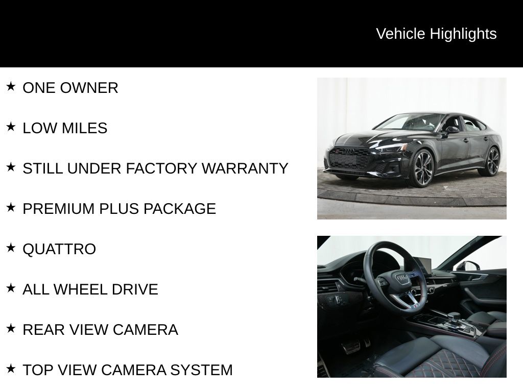 Audi's commitment to quality and performance is on full display in this certified pre-owned S5 Sportback. With a 125+ point inspection, a comprehensive warranty, and 24/7 roadside assistance, you can purchase this vehicle with complete confidence.
