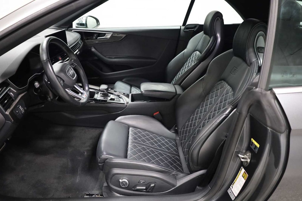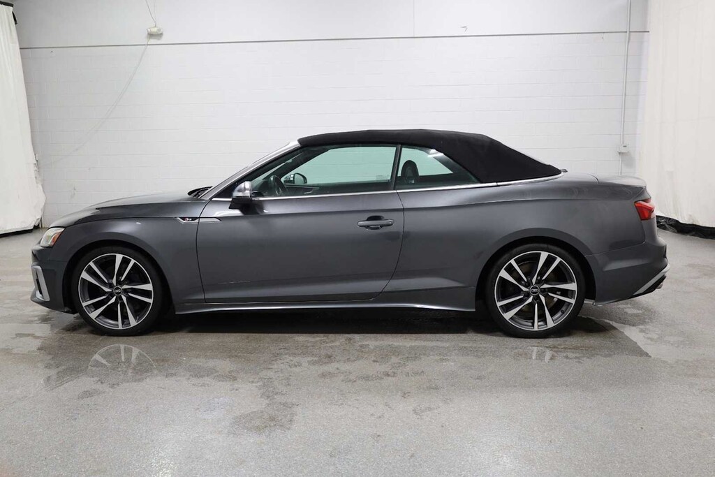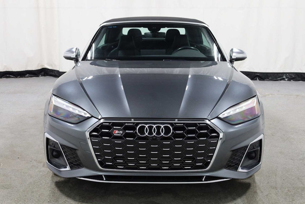 Daytona Gray Pearl Effect 2023 Audi S5 3.0T Premium Plus quattro quattro 8-Speed Automatic with Tiptronic 3.0L TFSI S5 3.0T Premium Plus quattro, 2D Convertible, quattro, Daytona Gray Pearl Effect, Black w/Leather/Dinamica Seating Surfaces or Leather Seating Surfaces or Fine Nappa Leather Seating Surfaces, Adaptive Cruise Control, Alarm System w/Motion Sensor, Audi Active Lane Assist, Audi Advanced Key, Audi Phone Box, Audi Side Assist w/Pre Sense Rear, Audi Virtual Cockpit Plus, Auto-Dimming Exterior Mirrors w/Memory, Bang & Olufsen Sound System w/3D Sound, Convenience Package, Convertible roof lining, Driver Seat Memory, Front Bucket Seats, Front Center Armrest, Hands-On Detection Steering Wheel, Heated Front S Sport Seats, Heated front seats, Heated Steering Wheel, Illuminated entry, Leatherette Covered Center Console & Door Armrests, Parking System Plus, Power driver seat, Power Folding Exterior Mirrors, Power steering, Power windows, Premium Plus Package, SiriusXM w/360L, Top View Camera System, Traffic Jam Assist, Wheels: 19 5-Double-Arm Design Bi-Color Finish.