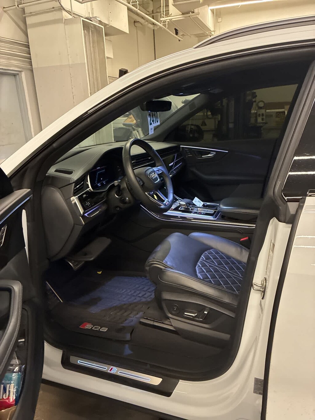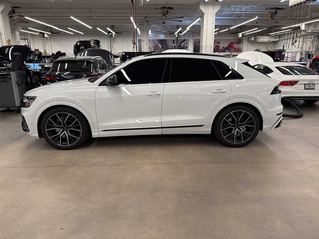 Recent Arrival! SQ8 Glacier White Metallic 4.0T Prestige quattro 8-Speed Automatic 4.0L V8 Turbocharged DOHC 32V LEV3-ULEV125 500hp SQ8 4.0T Prestige quattro, 4.0L V8 Turbocharged DOHC 32V LEV3-ULEV125 500hp, Glacier White Metallic, Black w/Valcona Leather Seating Surfaces, Alu Touch-Sensitive Interior Buttons, Audi S Beam - Front & Rear Doors, Black Dinamica Headliner, Black Optic Package, Black Roof Rails, Carbon Fiber Mirror Caps, Executive Package, Extended Leather Package, Front Seat Massage Functions, Head-Up Display, High-Gloss Black Exterior Elements, Intersection Assist, Power Liftgate, Power moonroof: Panoramic, Power Soft-Closing Doors, Prestige Package, Remote Park Assist Plus, Sports Exhaust Resonator Kit, SQ8 Luxury Package, Traffic Sign Recognition, Wheels: 22 5-V-Spoke Star Design.