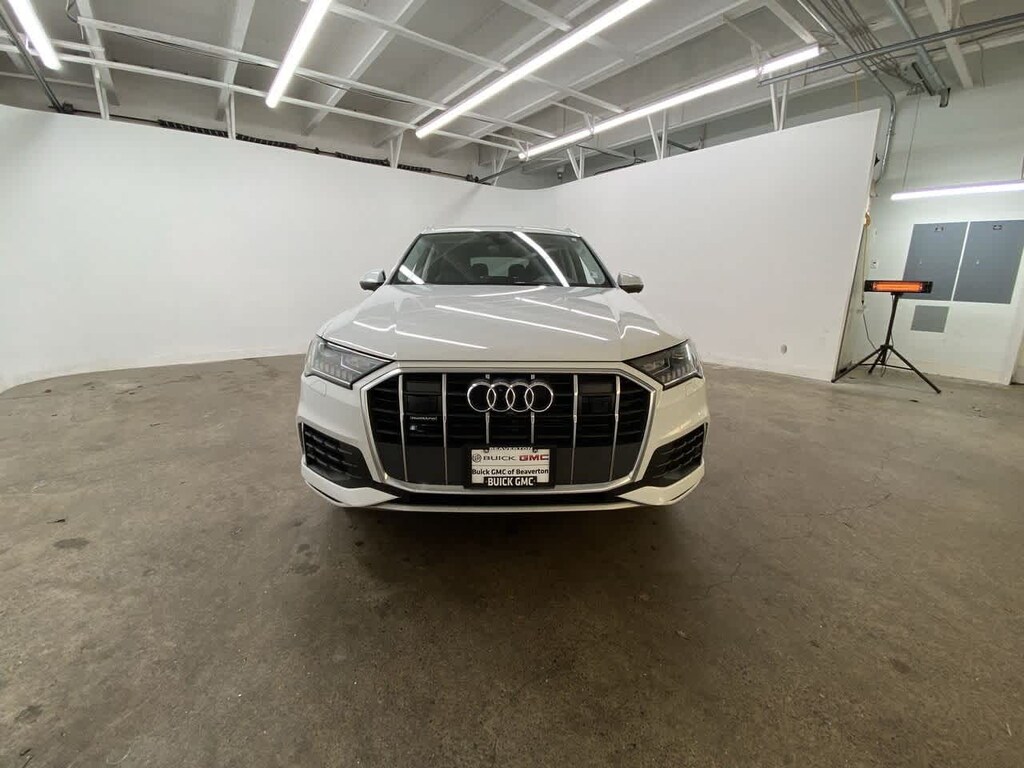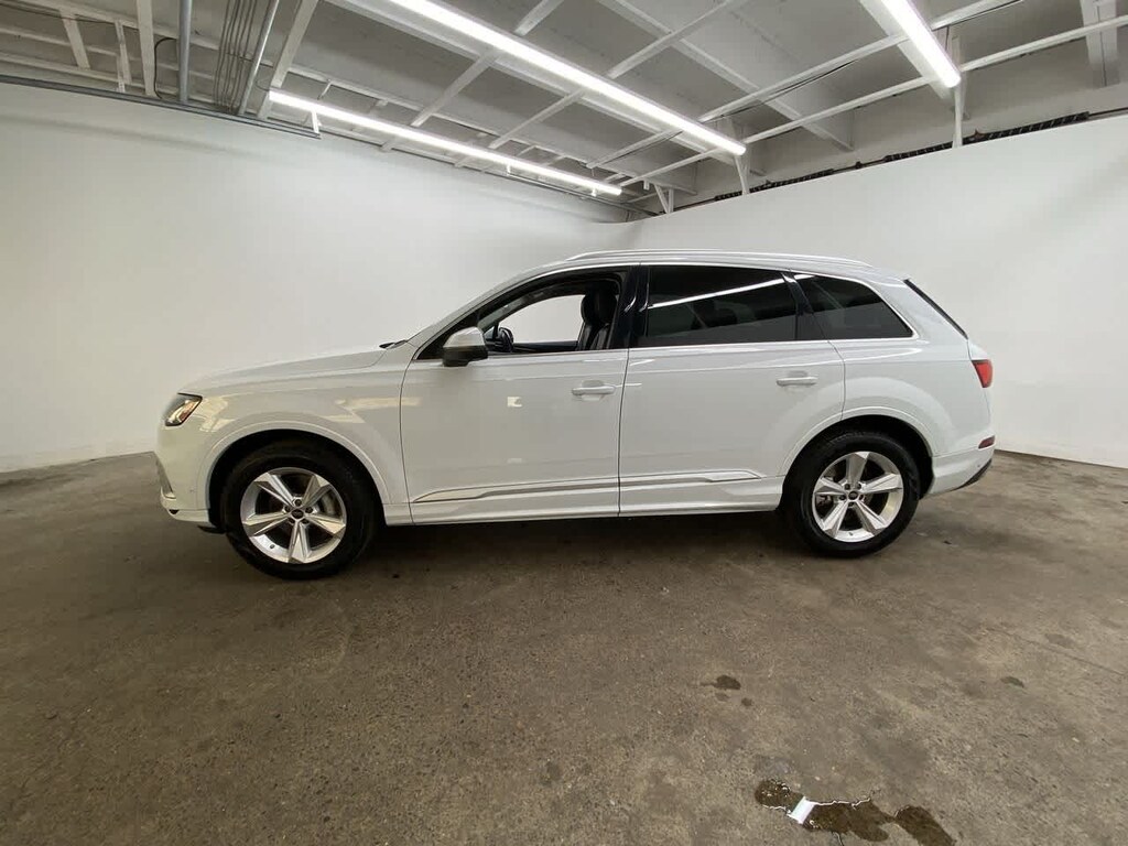 Leather Seats, Third Row Seat, Navigation, Sunroof, Panoramic Roof, All Wheel Drive, Power Liftgate, Rear Air, Heated Driver Seat, Turbocharged, Satellite Radio, iPod/MP3 Input, Onboard Communications System, Aluminum Wheels, Keyless Start Audi Premium Plus with Glacier White metallic exterior and Black interior features a 4 Cylinder Engine.