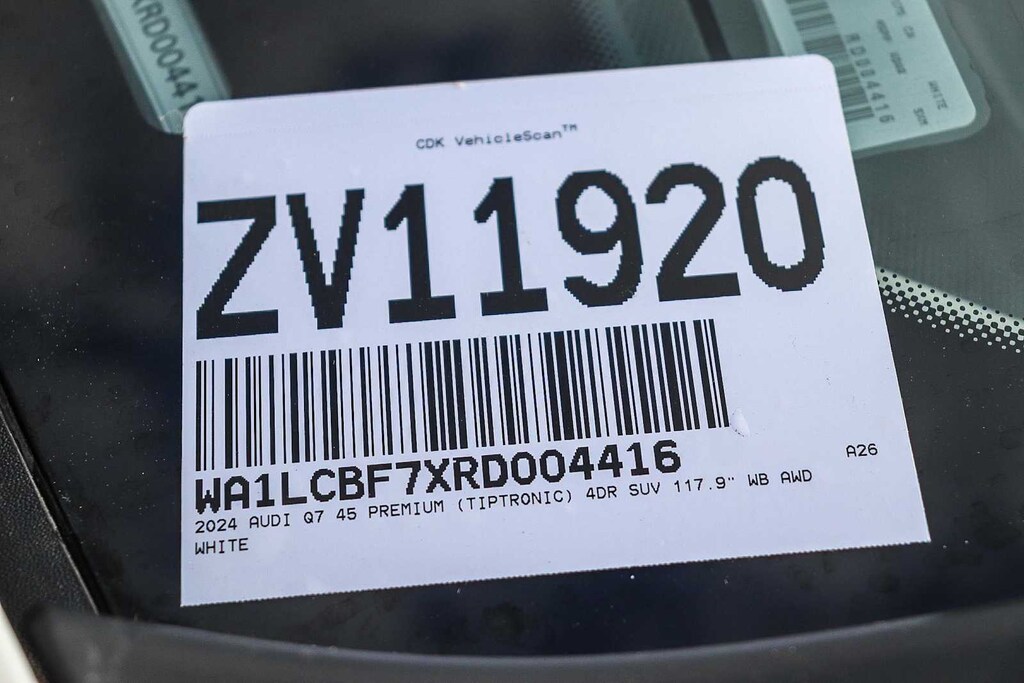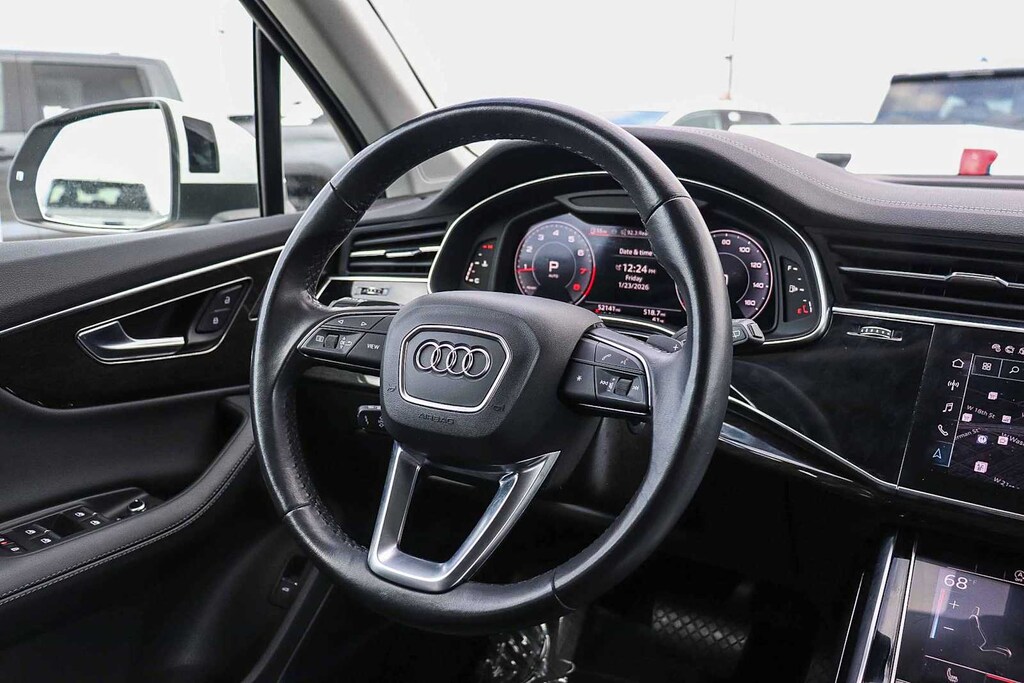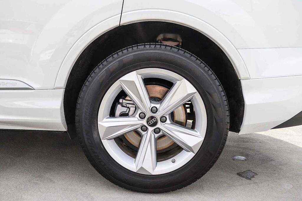 Q7 45 Premium Plus quattro, 4D Sport Utility, 2.0L 4-Cylinder TFSI, 8-Speed Automatic with Tiptronic, quattro, White, Black w/Leather Seating Surfaces or Valcona/Cricket Leather Seat Trim, 10 Speakers, 8-Way Power Driver and Passenger Seat, ABS brakes, Alloy wheels, Bang & Olufsen Premium Sound System w/3D Sound, Brake assist, Compass, Electronic Stability Control, Exterior Parking Camera Rear, Front dual zone A/C, Front fog lights, Heated door mirrors, Heated Front Bucket Seats, Heated front seats, Illuminated entry, Low tire pressure warning, Navigation system: Audi MMI Navigation plus with Touch Response, Power Liftgate, Power moonroof: Panoramic, Rear fog lights, Remote keyless entry with push button start, Traction control, and Wheels: 19 5-Arm-Star Design