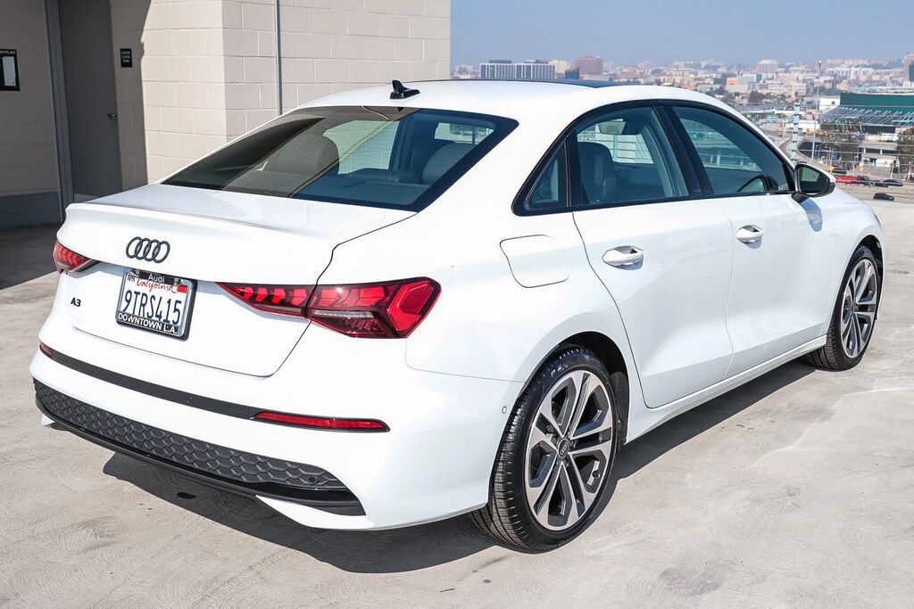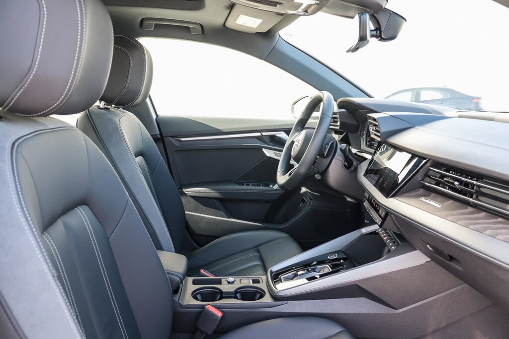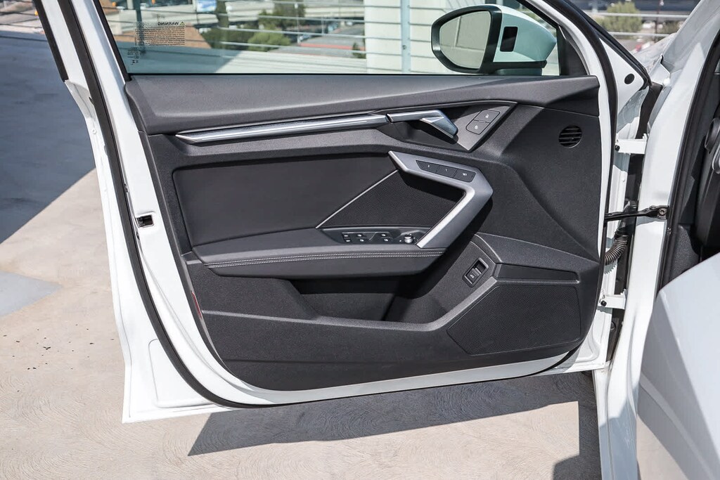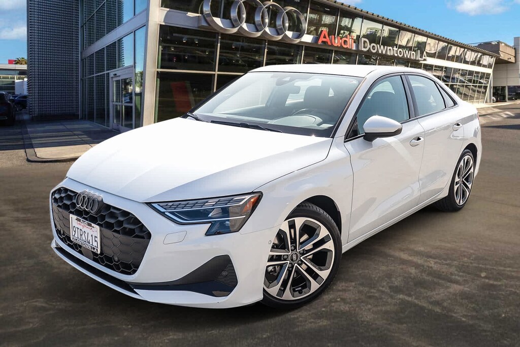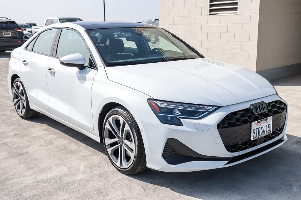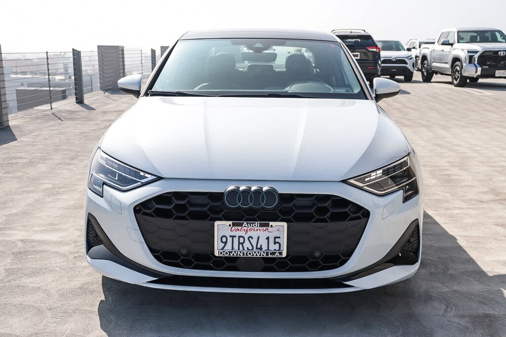 MULTI POINT SAFETY AND MECHANICAL INSPECTION PERFORMED BY CERTIFIED TECHNICIAN, PERFORMED SERVICE, INTERIOR and EXTERIOR DETAILED FOR DELIVERY, 4-Wheel Disc Brakes, 6 Speaker Sound System, 6 Speakers, ABS brakes, Adaptive Cruise Assist, Air Conditioning, Alloy wheels, AM/FM radio, Anthracite Audi Rings, Audi Advanced Key, Auto High-beam Headlights, Auto-Dimming Power Folding Exterior Mirrors, Auto-Dimming Rear-View Mirror, Automatic temperature control, Black Exterior Trim, Black Optic Package, Brake assist, Bumpers: body-color, Convenience Package, Delay-off headlights, Driver door bin, Driver vanity mirror, Dual front impact airbags, Dual front side impact airbags, Electronic Stability Control, Emergency communication system: Audi connect CARE, Exterior Parking Camera Rear, Four wheel independent suspension, Front anti-roll bar, Front Bucket Seats, Front Center Armrest, Front dual zone A/C, Front reading lights, Fully automatic headlights, Genuine wood dashboard insert, Heated door mirrors, Heated Front Bucket Seats, Heated front seats, HomeLink Garage Door Opener, Illuminated entry, Knee airbag, Leather Seating Surfaces, Leather steering wheel, Low tire pressure warning, Memory for Drivers Seat, Occupant sensing airbag, Outside temperature display, Overhead airbag, Overhead console, Panic alarm, Passenger door bin, Passenger vanity mirror, Power door mirrors, Power driver seat, Power moonroof, Power passenger seat, Power steering, Power windows, Radio data system, Radio: MMI w/10.1 Touchscreen Display, Rain sensing wipers, Rear air conditioning, Rear anti-roll bar, Rear fog lights, Rear reading lights, Rear seat center armrest, Rear side impact airbag, Rear window defroster, Remote keyless entry, Security system, SiriusXM w/360L, Speed control, Speed-sensing steering, Speed-Sensitive Wipers, Split folding rear seat, Sport Suspension (-15 mm), Steering wheel mounted audio controls, Tachometer, Telescoping steering wheel, Tilt steering wheel, Traction control, Trip computer, Turn signal indicator mirrors, Variably intermittent wipers, Wheels: 17 5-V-Spoke Design, Wheels: 18 5-Double-Spoke Design, Wireless Phone Charging Pad. Glacier White 2025 Audi A3 40 Premium quattro quattro 7-Speed Automatic S tronic 2.0L 4-Cylinder TFSI. Prior service loaner.