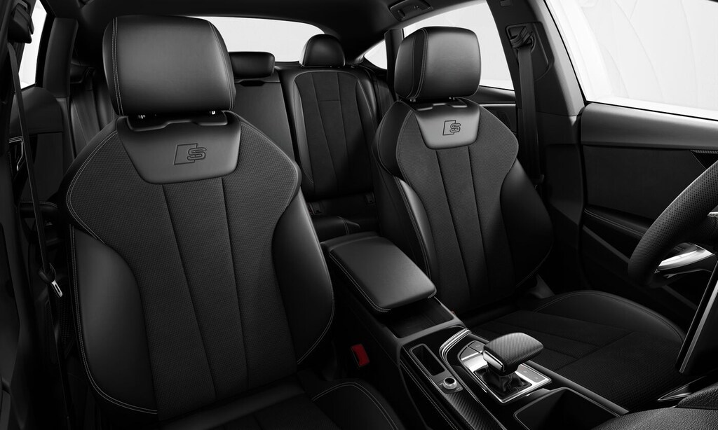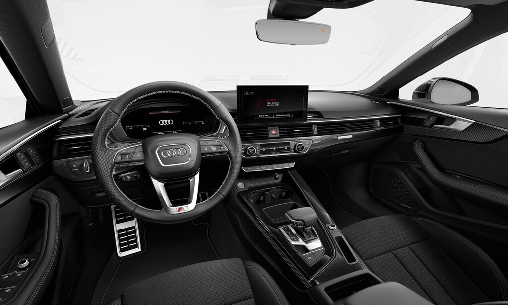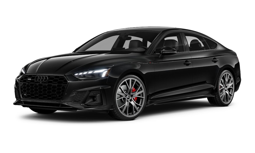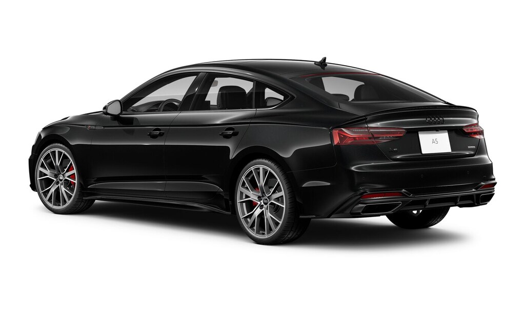 A5 Sportback 45 S line Premium Plus is nicely equipped with LED Interior Lighting Plus Package, Premium Plus (Alarm System with Motion Sensor, Audi Advanced Key, Audi Connect NAV and PLUS, Audi MMI Navigation Plus, Audi Side Assist with Pre Sense Rear, Audi Virtual Cockpit Plus, Auto-Dimming Power Folding Exterior Mirrors, Bang & Olufsen Sound System with 3D Sound, Leatherette Covered Center Console and Door Armrests, Memory For Drivers Seat, SiriusXM with 360L, Top View Camera System, Traffic Sign Recognition, Wheels: 19 5-Arm-Cutter Design Bi-Color Finish, and Wireless Phone Charging Pad), S Line Plus Package (Black Fender Elements, Black Mirror Housings, Black Rear Lip Spoiler, Dark Chrome Exhaust Tips, Leather/Dinamica Seating Surfaces, Red Brake Calipers, RS Carbon Inlays, and Wheels: 20 5-V-Spoke-Star Design), 10 Speakers, 4-Wheel Disc Brakes, ABS brakes, Air Conditioning, All-Weather Floor Mats, Alloy wheels, AM/FM radio, Anti-whiplash front head restraints, Audi Beam-Rings (4 Rings), Auto High-beam Headlights, Auto-dimming Rear-View mirror, Automatic temperature control, Brake assist, Bumpers: body-color, Cargo Mat, Collapsible Fabric Audi Trunk Cargo Storage Box, Compass, Delay-off headlights, Driver door bin, Driver vanity mirror, Dual front impact airbags, Dual front side impact airbags, Electronic Stability Control, Emergency communication system: Audi connect CARE, Exterior Parking Camera Rear, Four wheel independent suspension, Front anti-roll bar, Front Bucket Seats, Front Center Armrest, Front dual zone A/C, Front fog lights, Front reading lights, Garage door transmitter: HomeLink, Genuine wood console insert, Genuine wood dashboard insert, Genuine wood door panel insert, Heated door mirrors, Heated front seats, Heated Front Sport Seats, Heated steering wheel, Illuminated entry, Knee airbag, Leather Seating Surfaces, Leather Shift Knob, Leather steering wheel, Low tire pressure warning, Occupant sensing airbag, Outside temperature display, Overhead airbag, Overhead console, Panic alarm, Passenger door bin, Passenger vanity mirror, Power adjustable front head restraints, Power door mirrors, Power driver seat, Power Liftgate, Power moonroof, Power passenger seat, Power steering, Power windows, Radio data system, Radio: Audi Sound System, Rain sensing wipers, Rear air conditioning, Rear anti-roll bar, Rear reading lights, Rear seat center armrest, Rear window defroster, Remote keyless entry, Speed control, Speed-sensing steering, Speed-Sensitive Wipers, Split folding rear seat, Steering wheel mounted audio controls, Tachometer, Telescoping steering wheel, Tilt steering wheel, Traction control, Trip computer, Turn signal indicator mirrors, Variably intermittent wipers, and Wheels: 18 5-Double-Spoke Design.