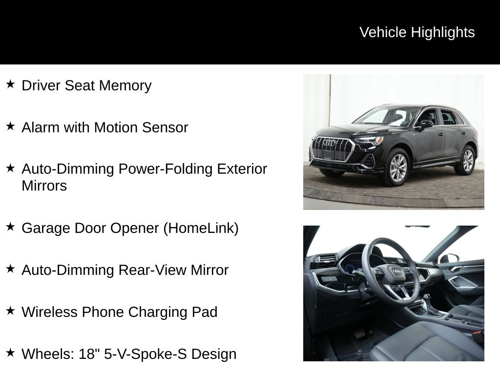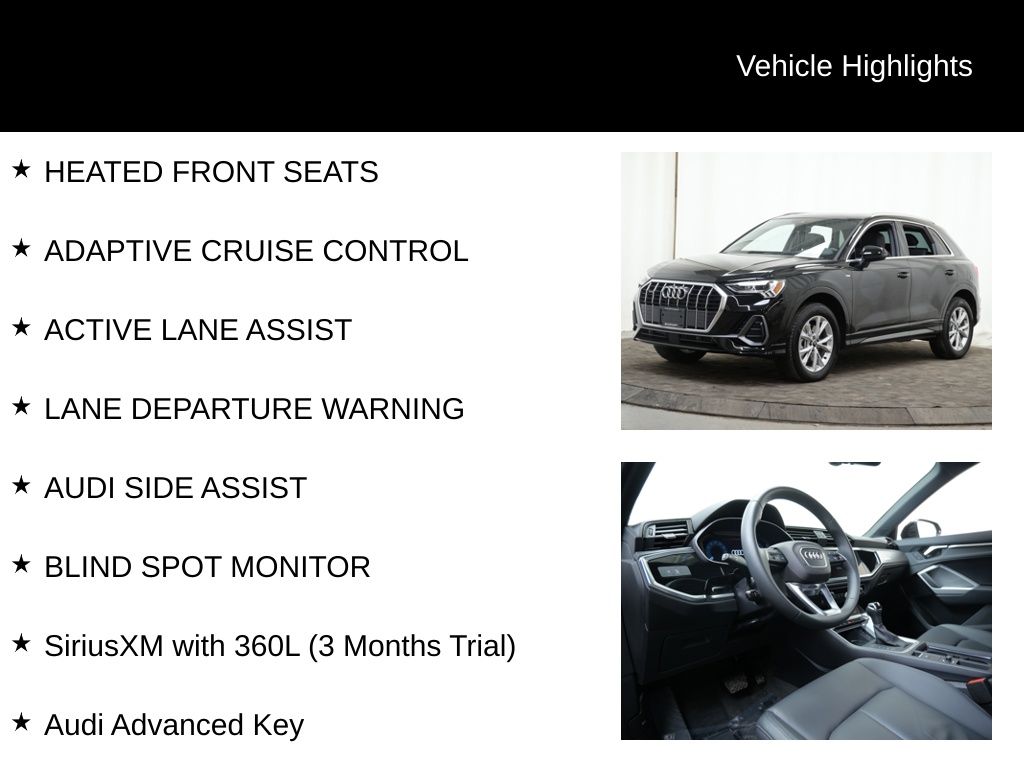 This 2025 Audi Q3 Premium S Line quattro has an impressive list of features that make it a standout in its class. With only 7,900 miles, this one-owner vehicle is Audi Certified and comes with a clean CARFAX report, ensuring you can purchase with confidence.