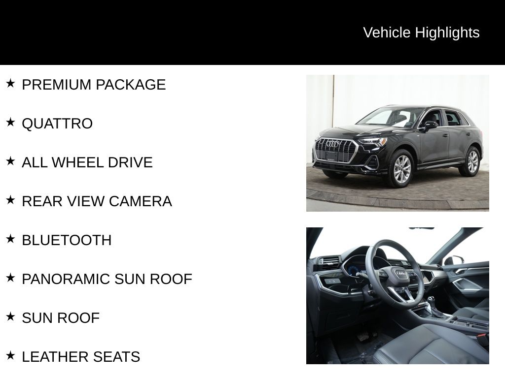 Whether you're looking for a versatile SUV for your daily commute or a capable companion for your weekend adventures, this 2025 Audi Q3 Premium S Line quattro is an exceptional choice. With its premium features, impressive performance, and Audi Certified pre-owned status, this vehicle is sure to exceed your expectations. We invite you to schedule a test drive and experience the exceptional quality and craftsmanship of this remarkable Audi SUV.