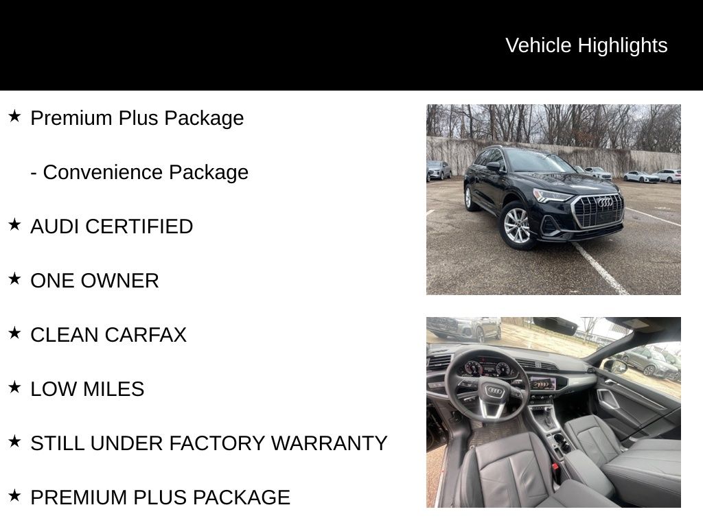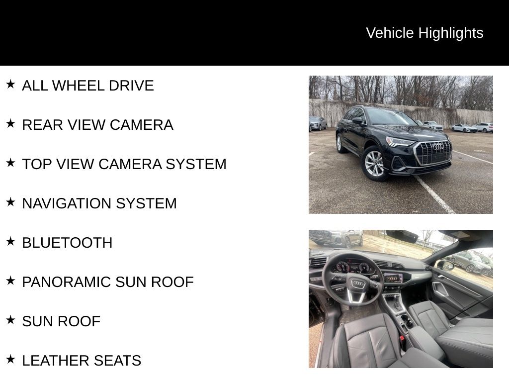 This exceptional Q3 is the perfect combination of luxury, technology, and performance. I encourage you to schedule a test drive and experience the Audi difference for yourself. I'm confident you'll be impressed by this remarkable vehicle.