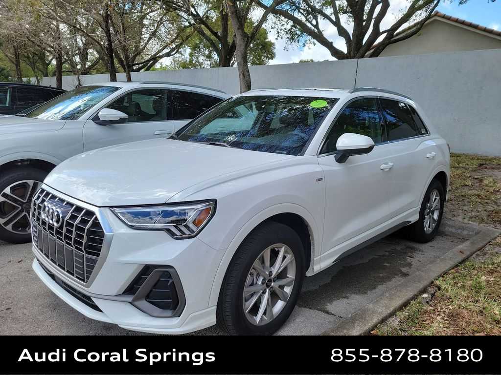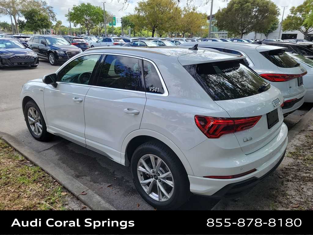 Certified. 2025 Audi Q3 Premium S Line quattro Arkona White, Black w/Leather Seating Surfaces, Alarm with Motion Sensor, Audi Advanced Key, Auto-Dimming Power-Folding Exterior Mirrors, Auto-Dimming Rear-View Mirror, Convenience Package, Driver Seat Memory, Garage Door Opener (HomeLink), Heated Front Bucket Seats, LED Interior Lighting Package, Power Liftgate, Power moonroof: Panoramic, SiriusXM with 360L (3 Months Trial), Wireless Phone Charging Pad.