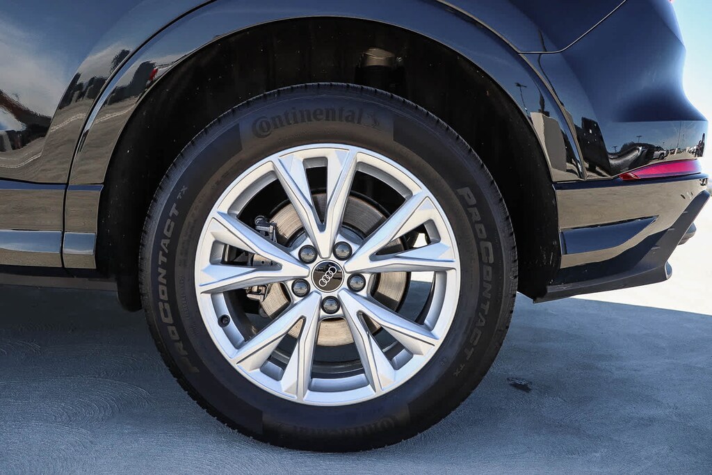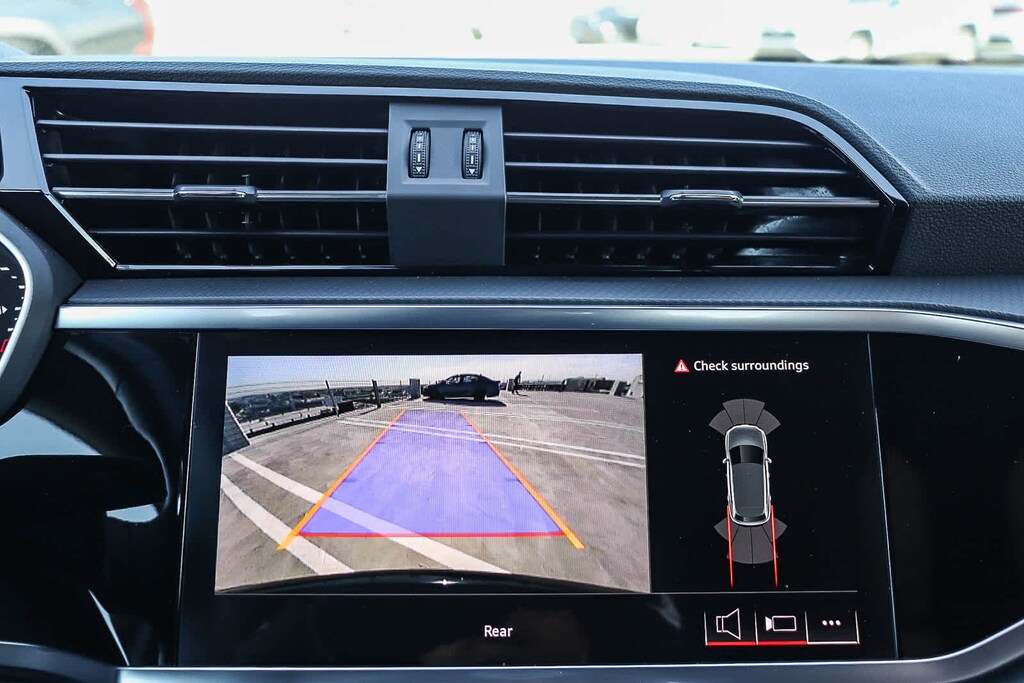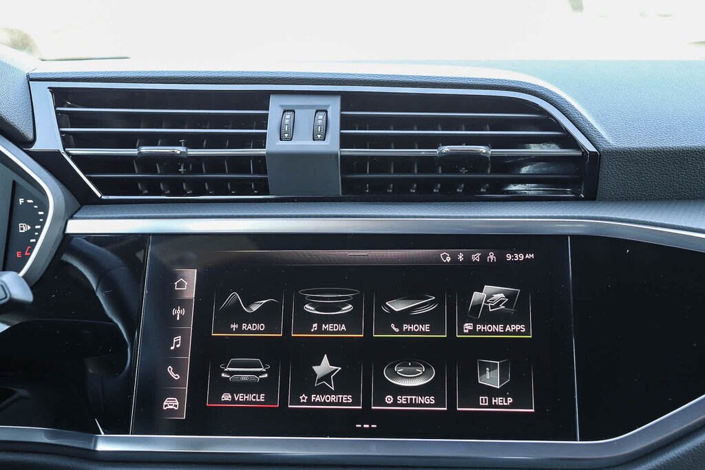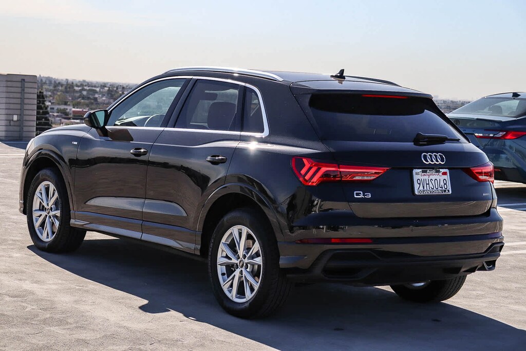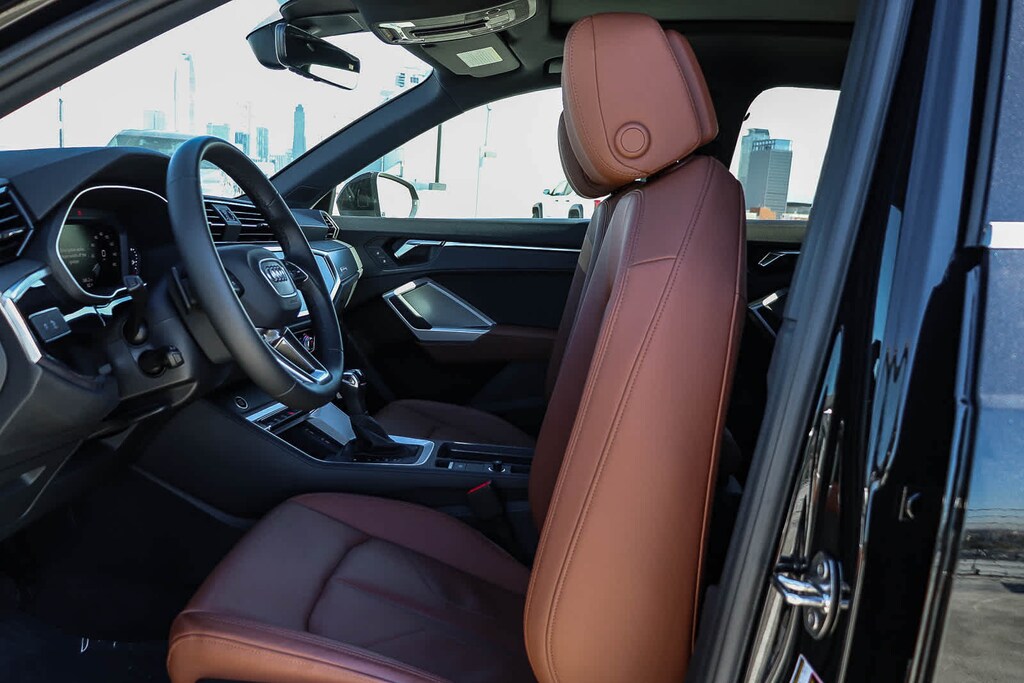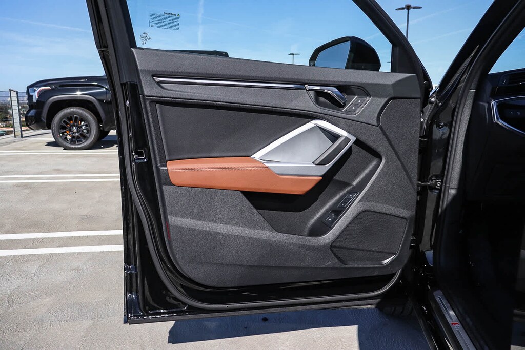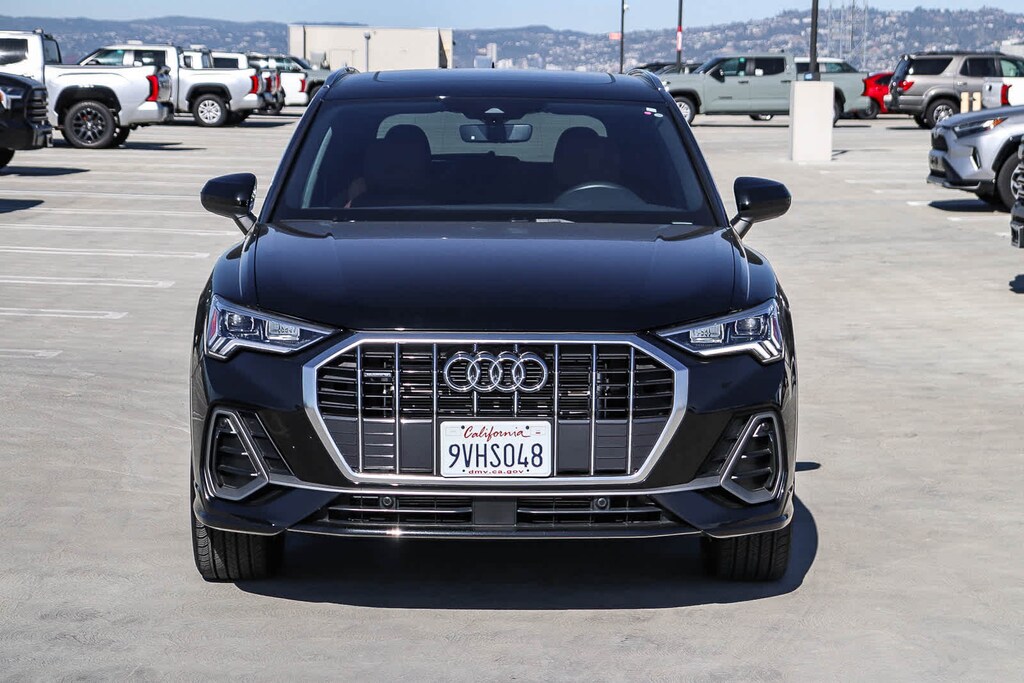 MULTI POINT SAFETY AND MECHANICAL INSPECTION PERFORMED BY CERTIFIED TECHNICIAN, PERFORMED SERVICE, INTERIOR and EXTERIOR DETAILED FOR DELIVERY, 10 Speakers, 4-Wheel Disc Brakes, ABS brakes, Air Conditioning, Alarm with Motion Sensor, Alloy wheels, AM/FM radio, Audi Advanced Key, Audi Beam-Rings, Audi First Aid Kit, Audi Guard Cargo Mat, Audi Guard Wheel Lock Kit, Audi smartphone interface (Apple CarPlay/Android Auto), Auto High-beam Headlights, Auto-Dimming Power-Folding Exterior Mirrors, Auto-Dimming Rear-View Mirror, Automatic temperature control, Brake assist, Bumpers: body-color, Convenience Package, Delay-off headlights, Driver door bin, Driver Seat Memory, Driver vanity mirror, Dual front impact airbags, Dual front side impact airbags, Electronic Stability Control, Emergency communication system: Audi connect CARE, Exterior Parking Camera Rear, Four wheel independent suspension, Front anti-roll bar, Front Bucket Seats, Front Center Armrest, Front dual zone A/C, Front fog lights, Front reading lights, Fully automatic headlights, Garage Door Opener (HomeLink), Heated door mirrors, Heated Front Bucket Seats, Heated front seats, Illuminated entry, Knee airbag, Leather Seating Surfaces, Leather Shift Knob, Leather steering wheel, LED Interior Lighting Package, Low tire pressure warning, Occupant sensing airbag, Outside temperature display, Overhead airbag, Overhead console, Panic alarm, Passenger door bin, Passenger vanity mirror, Power door mirrors, Power driver seat, Power Liftgate, Power moonroof: Panoramic, Power passenger seat, Power steering, Power windows, Radio data system, Radio: Audi Sound System, Rain sensing wipers, Rear air conditioning, Rear anti-roll bar, Rear reading lights, Rear seat center armrest, Rear window defroster, Rear window wiper, Remote keyless entry, SiriusXM with 360L (3 Months Trial), Speed control, Speed-sensing steering, Split folding rear seat, Spoiler, Steering wheel mounted audio controls, Tachometer, Telescoping steering wheel, Tilt steering wheel, Traction control, Trip computer, Turn signal indicator mirrors, Variably intermittent wipers, Wheels: 18 5-V-Spoke-S Design, Wireless Phone Charging Pad. Black Metallic 2025 Audi Q3 Premium S Line quattro quattro 8-Speed Automatic with Tiptronic 2.0L 4-Cylinder TFSI Prior service loaner
