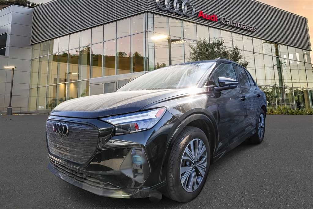 Leather Seats, Navigation, Panoramic Roof Audi Premium Plus with Mythos Black metallic exterior and Black / Rock Gray stitching interior features a Electric Motor.