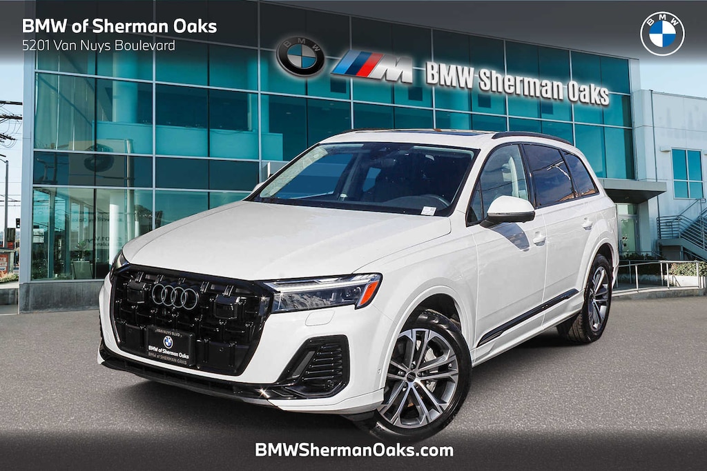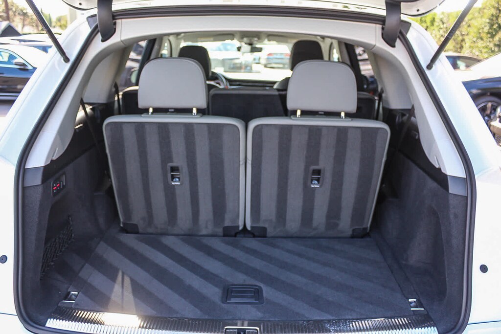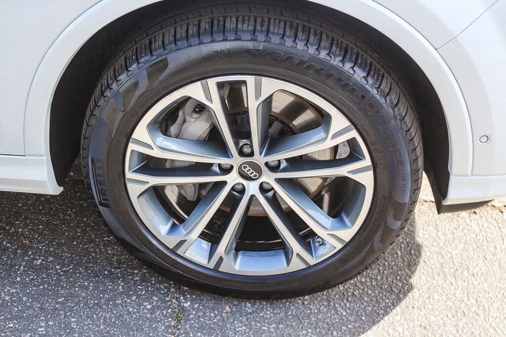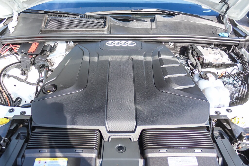 Leather Seats, Third Row Seat, Navigation, Sunroof, Panoramic Roof Audi Premium Plus with Carrara White exterior and Pando Gray interior features a 4 Cylinder Engine.