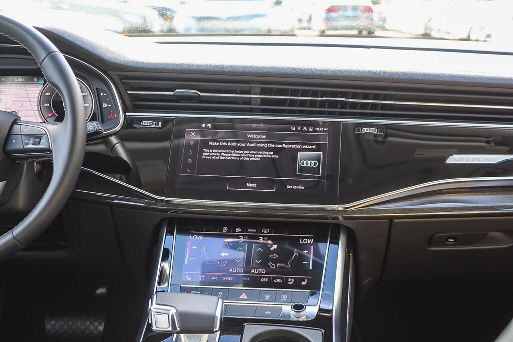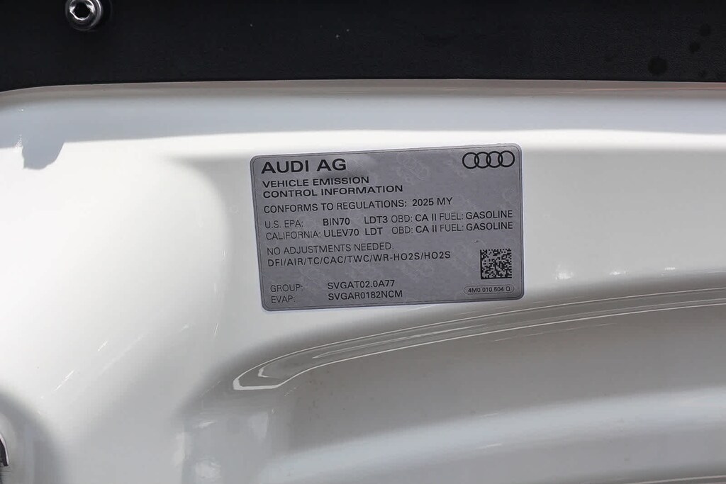 PREMIUM PLUS PACKAGE LED Interior Lighting Package Plus, Convenience Package, Heated Steering Wheel, Top View Camera System, virtual 360 view, Wireless Phone Charging Pad, Bang & Olufsen Premium Sound System w/3D Sound, Illuminated Door Sills, EXECUTIVE PACKAGE Dual-Pane Acoustic Glass, Heated Rear Seats, Traffic Sign Recognition, Four-Zone Automatic Climate Control, Front Seats w/Ventilation, passenger 4-way power lumbar, Rear Door/Side Windows & Tailgate Sunshades, BLACK OPTIC PACKAGE Black Exterior Trim, Black Grille, Black Roof Rails, Black Door Blades, Black Window Surrounds, Anthracite Gray Audi Rings, Wheels: 20 5-Double-Spoke Bicolor Finish, Dark Chrome Exhaust Tips.