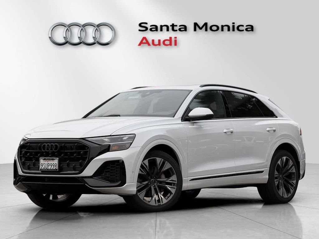 2025 Audi Q8 55 Premium Plus quattro Glacier White Metallic quattro Still Under Factory Warranty, LOW LOW MILES!, Service Contract Available, All Services Updated, Leather Seats, Q8 55 Premium Plus quattro, 4D Sport Utility, 3.0L V6 Turbocharged DOHC 24V LEV3-ULEV70 335hp, 8-Speed Automatic with Tiptronic, quattro, Glacier White Metallic, Black w/Leather Seating Surfaces Or Valcona/Cricket Leather Seating Surfaces, 4-Zone Automatic Climate Control, Anthracite Gray Audi Rings, Bang & Olufsen 3D Premium Sound System, Black Exterior Trim, Black Optic Package, Convenience Package, Dark Chrome Exhaust Tips, Front Seats with Ventilation, Heated Steering Wheel, Illuminated Door Sills, LED Interior Lighting Plus Package, Navigation system: Audi MMI Navigation with Touch Response, Premium Plus Package, Top View Camera System with Virtual 360 View, Wheels: 22 5-Double-Arm Design Bicolor Finish, Wireless Phone Charging Pad. Clean CARFAX. CARFAX One-Owner.