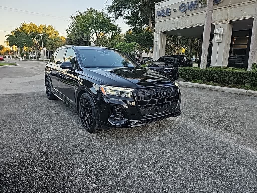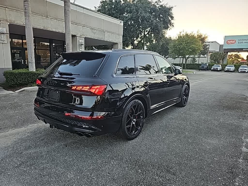 ** Adaptive cruise control, ** Alloy Wheels / Premium Wheels, ** Apple CarPlay/Android Auto, ** Backup Camera, ** Blind Spot Monitor, ** Bluetooth, Hands-Free, ** Brake Assist, ** Cruise Control, ** Heated Seats, ** Heated Steering Wheel, ** HomeLink, ** Keyless Entry, ** Keyless Start, ** Lane Departure Warning, ** Leather Seats, ** LED Headlights, ** Memory Seat, ** Navigation System, ** Premium Sound System / DVD Player, ** Rear Cross Traffic Alert, ** Remote Start, ** Satellite Radio, ** Security System, ** Stability Control, ** Steering Wheel Controls, ** Sunroof/Moonroof, ** Tow Hitch / Trailer Hitch, ** USB Port, SQ7 Prestige quattro, 4D Sport Utility, 4.0L V8 Turbocharged DOHC 32V LEV3-ULEV125 500hp, 8-Speed Automatic with Tiptronic, quattro, Black Metallic, Black Leather, 19 Speakers, 3rd row seats: bench, 4-Wheel Disc Brakes, ABS brakes, Active Roll Stabilization, Adaptive suspension, Air Conditioning, All-Weather Floor Mats, Alloy wheels, AM/FM Radio, AM/FM radio: SiriusXM w/ 360L, Animation for Headlights & Taillights, Anthracite Gray Audi Rings, Auto High-beam Headlights, Auto-dimming door mirrors, Auto-dimming Rear-View mirror, Auto-leveling suspension, Automatic temperature control, Bang & Olufsen Advanced Sound System w/3D Sound, Bang & Olufsen Premium Sound System, Black Exterior Trim, Black Optic Package, Brake assist, Bumpers: body-color, Carbon Fiber Exterior Mirror Housings, Carbon Fiber Exterior Side Sill Inlays, Carbon Fiber Mirror Caps (DISC), Carbon Package, Compass, Delay-off headlights, Diamond Stitched Valcona Leather Seat Trim, Driver door bin, Driver vanity mirror, Dual front impact airbags, Dual front side impact airbags, Dual-Pane Acoustic Glass for Side Windows, Electronic Stability Control, Emergency communication system: Audi connect CARE, Executive Package, Exterior Parking Camera Rear, Four wheel independent suspension, Front & Rear Door Audi S Beam, Front anti-roll bar, Front Bucket Seats, Front Center Armrest, Front dual zone A/C, Front fog lights, Front reading lights, Fully automatic headlights, Garage door transmitter: HomeLink, HD Matrix-Design LED Headlights w/Audi Laser Light, Head-Up Display, Headlight Washer System, Heated door mirrors, Heated front seats, Heated Front Sport Seats Plus, Heated Rear Seats, Heated steering wheel, Illuminated entry, Intersection Assist, Leather Shift Knob, Leather steering wheel, Low tire pressure warning, Memory Function for Front Passenger Seat, Memory seat, Navigation system: Audi MMI Navigation plus with Touch Response, Occupant sensing airbag, OLED Taillights, Outside temperature display, Overhead airbag, Overhead console, Panic alarm, Passenger door bin, Passenger vanity mirror, Power door mirrors, Power driver seat, Power Liftgate, Power moonroof: Panoramic, Power passenger seat, Power Soft-Closing Doors, Power steering, Power windows, Prestige Package, Privacy Trunk Cover, Radio data system, Rain sensing wipers, Rear air conditioning, Rear anti-roll bar, Rear Door/Side Windows & Tailgate Sunshades, Rear dual zone A/C, Rear fog lights, Rear reading lights, Rear seat center armrest, Rear side impact airbag, Rear window defroster, Rear window wiper, Reclining 3rd row seat, Red Brake Calipers, Remote keyless entry, Remote Park Assist Plus, S Sport Package, Security system, Speed control, Speed-sensing steering, Split folding rear seat, Spoiler, Sport Rear Differential, Sports Exhaust Resonator Kit, Steering wheel memory, Steering wheel mounted audio controls, Tachometer, Telescoping steering wheel, Tilt steering wheel, Traction control, Traffic Sign Recognition, Trailer Hitch, Trip computer, Turn signal indicator mirrors, Variably intermittent wipers, Ventilated Front Seats, Ventilation & Massage Function for Fron