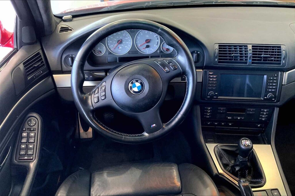FULLY SERVICED.....Plugs, coil packs, brakes, all fluids (power steering, differential, transmission, brake flush, oil); cabin filters, engine air filters, four wheel alignment--complete comprehensive shop service upon arrival. IMOLA RED BMW M5 RWD 6-Speed Manual with Overdrive 5.0L V8 SMPI DOHC Black Leather, 12 Speakers, 4-Wheel Disc Brakes, ABS brakes, Air Conditioning, Alloy wheels, AM/FM radio, Auto tilt-away steering wheel, Auto-dimming door mirrors, Auto-dimming Rear-View mirror, Automatic temperature control, Bodyside moldings, Brake assist, Bumpers: body-color, Cassette, Chrome wheels, Delay-off headlights, Driver door bin, Driver vanity mirror, Dual front impact airbags, Dual front side impact airbags, Electronic Stability Control, Four wheel independent suspension, Front anti-roll bar, Front Bucket Seats, Front Center Armrest, Front dual zone A/C, Front fog lights, Front reading lights, Front Sport Seats, Garage door transmitter, Head restraints memory, Headlight cleaning, Heated door mirrors, Heated front seats, High intensity discharge headlights: Xenon, Illuminated entry, Leather Shift Knob, Leather steering wheel, Low tire pressure warning, Memory seat, Nappa Point Leather, Navigation System, Occupant sensing airbag, Outside temperature display, Overhead airbag, Panic alarm, Passenger door bin, Passenger vanity mirror, Power adjustable front head restraints, Power door mirrors, Power driver seat, Power moonroof, Power passenger seat, Power steering, Power windows, Radio data system, Rain sensing wipers, Rear anti-roll bar, Rear reading lights, Rear seat center armrest, Rear side impact airbag, Rear window defroster, Remote CD player, Remote keyless entry, Seatbelt memory, Security system, Speed control, Speed-sensing steering, Speed-Sensitive Wipers, Spoiler, Sport steering wheel, Steering wheel memory, Steering wheel mounted A/C controls, Steering wheel mounted audio controls, Tachometer, Telescoping steering wheel, Tilt steering wheel, Traction control, Trip computer, Variably intermittent wipers, Voltmeter, Black Leather.