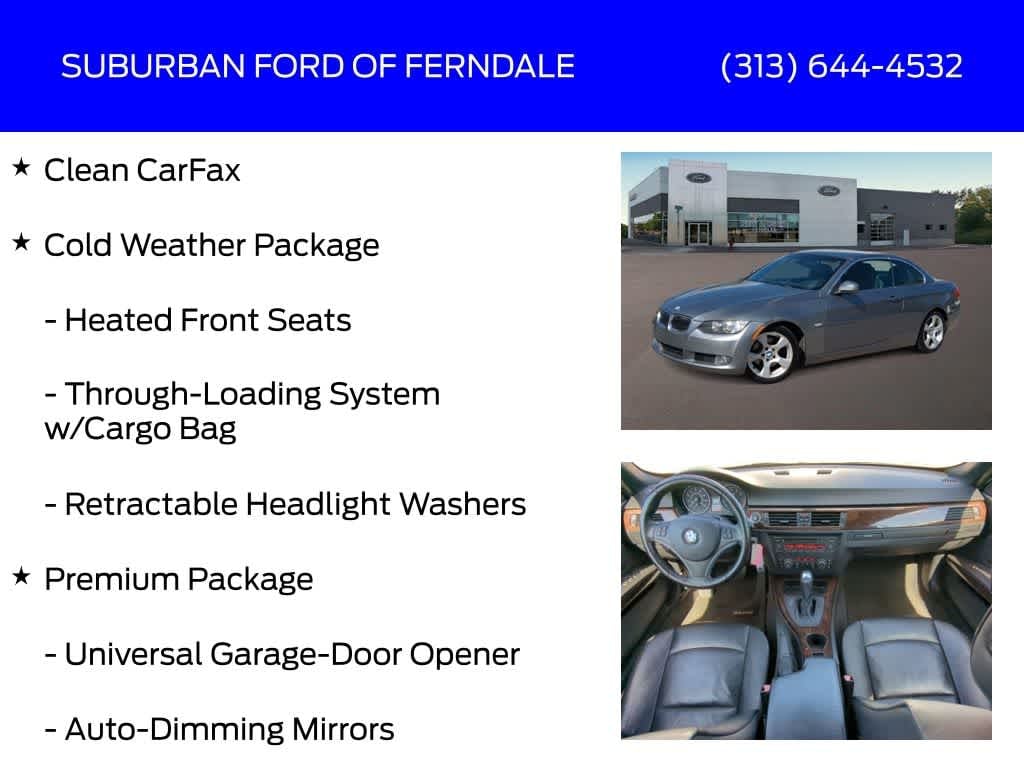 Space Gray Metallic 2010 BMW 3 Series 328i RWD 6-Speed Automatic Steptronic 3.0L 6-Cylinder DOHC 24V Clean CarFax, Anti-Theft AM/FM Stereo CD/MP3 Player, Auto-Dimming Mirrors, Auto-Dimming Rear-View Mirror, Automatic Temperature Control, BMW Assist with Bluetoothî System, Cold Weather Package, Convertible HardTop, Dakota Leather Upholstery, Digital Compass Mirror, Front Dual Zone A/C, Fully Automatic Headlights, Heated External Mirrors, Heated Front Seats, Hi-Fi Sound System, Lumbar Support, Memory Driver Seating, Power Door Mirrors, Power Driver Seat, Power Passenger Seat, Premium Package, Rear Air Conditioning, Rear Window Defroster, Retractable Headlight Washers, Through-Loading System w/Cargo Bag, Universal Garage-Door Opener.
