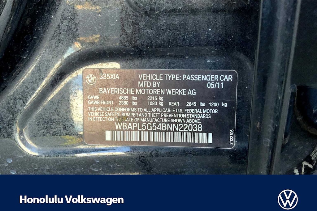 Black Sapphire Metallic 2011 BMW 3 Series 335i xDrive 4D Sedan AWD 6-Speed Automatic Steptronic 3.0L 6-Cylinder DOHC Turbocharged AWD.