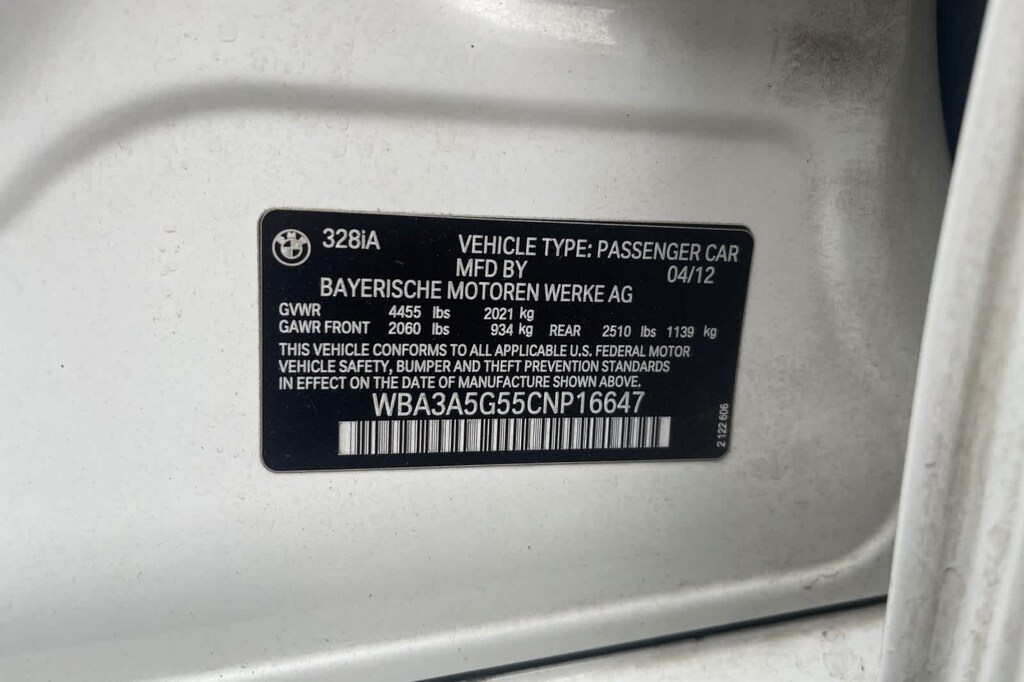 Alpine White 2012 BMW 3 Series 328i RWD 8-Speed Automatic Steptronic 2.0L 4-Cylinder DOHC 16V Turbocharged