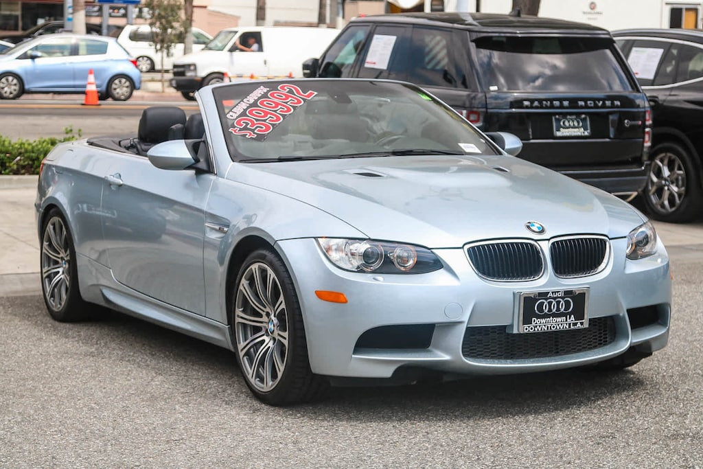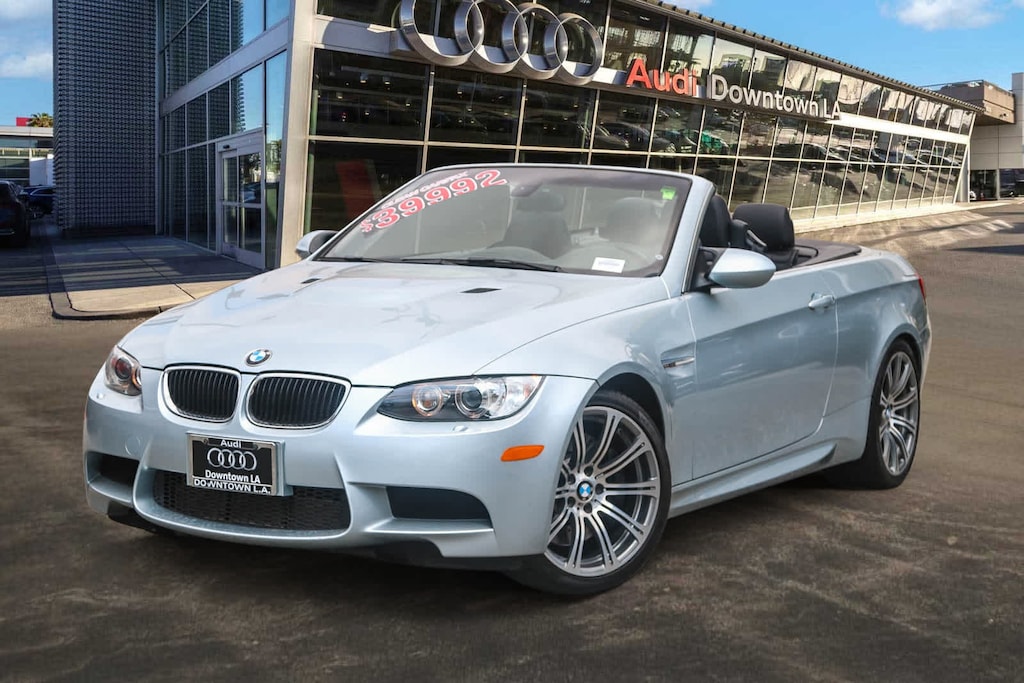 MULTI POINT SAFETY AND MECHANICAL INSPECTION PERFORMED BY CERTIFIED TECHNICIAN, PERFORMED SERVICE, INTERIOR and EXTERIOR DETAILED FOR DELIVERY, 10 Speakers, 19 x 8.5 Fr/19 x 9.5 Rr (Style 220M) Wheels, 4-Wheel Disc Brakes, ABS brakes, Air Conditioning, Alloy wheels, AM/FM radio, AM/FM Stereo w/CD/MP3 Capability, Anti-whiplash front head restraints, Auto-dimming Rear-View mirror, Automatic High Beams, Automatic temperature control, BMW Apps, BMW Assist w/Enhanced Bluetoothî & USB, Brake assist, Bumpers: body-color, Carbon Leather Interior Trim, CD player, Combox Controller, Comfort Access Keyless Entry, Convertible HardTop, Convertible roof lining, Delay-off headlights, Driver door bin, Driver vanity mirror, Dual front impact airbags, Dual front side impact airbags, Electronic Stability Control, Emergency communication system: BMW Assist, Four wheel independent suspension, Front anti-roll bar, Front Bucket Seats, Front Center Armrest, Front dual zone A/C, Front reading lights, Fully automatic headlights, Glass rear window, Hands-Free Bluetooth, Heated door mirrors, Heated Front Seats (3-Stage), High intensity discharge headlights: Bi-xenon, Illuminated entry, Integrated roll-over protection, Interior Mirror w/Compass, iPod & USB Adapter, Knee airbag, Leather Shift Knob, Leather steering wheel, Low tire pressure warning, Memory seat, Navigation System, Novillo Leather Upholstery, Occupant sensing airbag, Online Information Services, Outside temperature display, Panic alarm, Park Distance Control (Rear Only), Passenger door bin, Passenger vanity mirror, Power convertible roof, Power door mirrors, Power driver seat, Power Folding Auto Mirrors, Power passenger seat, Power steering, Power windows, Power-Adjustable Front M Sport Seats, Radio data system, Rain sensing wipers, Real Time Traffic Information, Rear air conditioning, Rear anti-roll bar, Rear reading lights, Rear seat center armrest, Rear window defroster, Remote keyless entry, Retractable Headlight Washers, Security system, SIRIUS Satellite Radio, Speed control, Speed-sensing steering, Speed-Sensitive Wipers, Sport steering wheel, Steering wheel mounted A/C controls, Steering wheel mounted audio controls, Tachometer, Telescoping steering wheel, Through-Loading System w/Integrated Transport Bag, Tilt steering wheel, Traction control, Trip computer, Universal Garage-Door Opener, Variably intermittent wipers, Voice-Command, Wheels: 18 x 8.5 Fr/18 x 9.5 Rr (Style 260M). Silverstone Metallic 2013 BMW M3 Base RWD 7-Speed Automatic 4.0L V8 32V