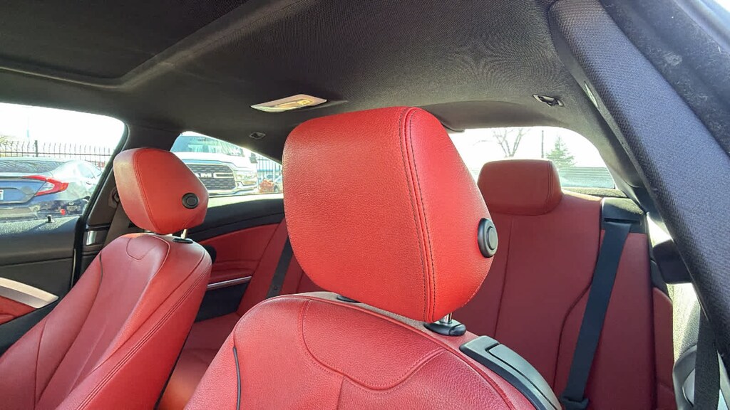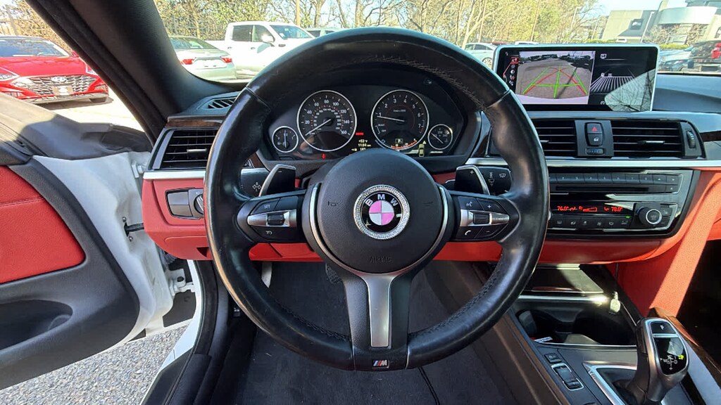 M SPORT: chrome rings around A/C and radio controls, sport instrument cluster, signature key and M footrest (only w/black or red upholsteries, Delete Front Fog Lights, Shadowline Exterior Trim, Wheels: 18 x 8 Lt Alloy Double-Spoke (Style 441M), Tires: P225/45R18 All Season, Anthracite Headliner, M Steering Wheel, M Sport Pkg, Estoril Blue Matte Highlight Trim Finishers, Without Exterior Lines Designation, Aluminum Hexagon Interior Trim, Aerodynamic Kit, Sport Seats, TECHNOLOGY PACKAGE: Head-Up Display, Navigation System w/Touchpad, BMW Online & BMW Apps, Instrument Cluster w/Extended Contents, Advanced Real-Time Traffic Information, Enhanced USB & Bluetooth® w/Smartphone Integration, Remote Services, PREMIUM PACKAGE: Comfort Access Keyless Entry, Lumbar Support, Satellite Radio, DRIVER ASSISTANCE PLUS: Active Blind Spot Detection, Speed Limit Information, Side & Top View Cameras, Active Driving Assistant, lane departure, forward collision, pedestrian warnings, and city collision mitigation, COLD WEATHER PACKAGE: Heated Steering Wheel, Retractable Headlight Washers, Heated Front Seats. BMW 428i xDrive with Mineral White Metallic exterior and Coral Red/Black interior features a 4 Cylinder Engine with 240 HP at 5000 RPM*.