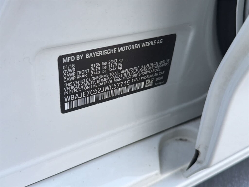 2018 BMW 5 Series 540i xDrive AWD 8-Speed Automatic 3.0L I6 Turbocharged DOHC 24V LEV3-ULEV70 335hp AWD, Cognac w/Dakota Leather Upholstery, Aerodynamic Kit, Driving Assistance Package, M Sport Package.