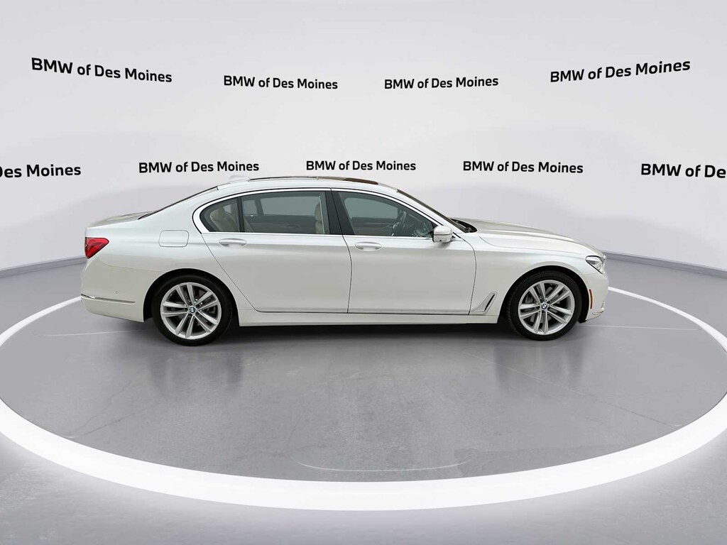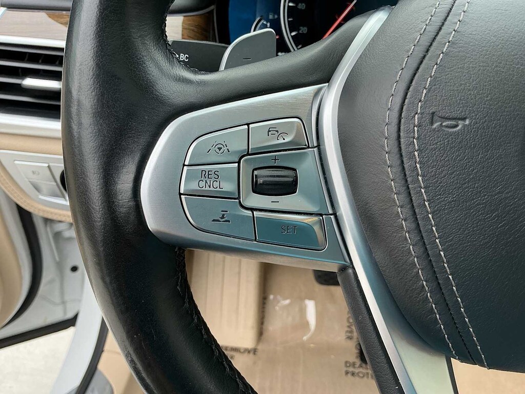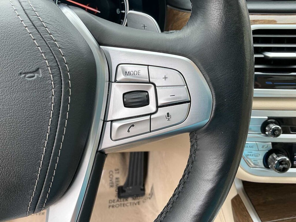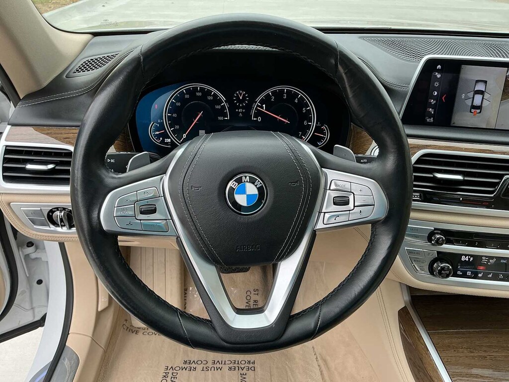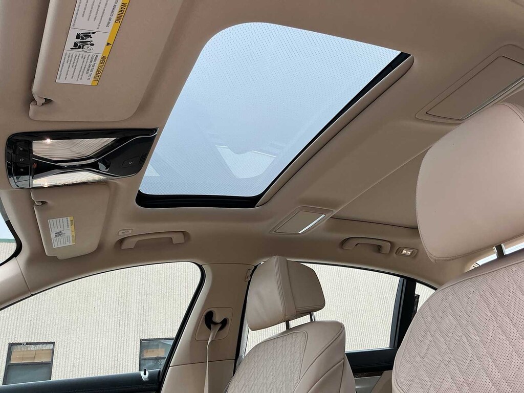 750i xDrive is nicely equipped with Driver Assistance Plus Package (Active Cruise Control w/Stop & Go, Active Driving Assistant Plus, Active Lane Keeping Assistant, and Traffic Jam Assistant), Executive Package (Ceramic Controls, Front Massaging Seats, Front Ventilated Seats, Instrument Panel w/Nappa Leather Finish, and Power Rear Sunshade & Rear Side Window Shades), Ambient Air Package, Cold Weather Package (Front & Rear Heated Seats and Heated Steering Wheel), Driver Assistance Package (Active Blind Spot Detection, Active Driving Assistant, Daytime Pedestrian Protection, Frontal Collision Warning, Lane Departure Warning System, and Speed Limit Info), Parking Assistance Package (Parking Assistant and Surround View Cameras), AWD, Canberra Beige Leather, 16 Speakers, 4-Wheel Disc Brakes, ABS brakes, Adaptive suspension, Air Conditioning, Alloy wheels, AM/FM radio: SiriusXM, American Oak Wood Trim w/Metal Inlay, Anti-whiplash front head restraints, Apple CarPlay Compatibility, Auto High-beam Headlights, Auto tilt-away steering wheel, Auto-dimming door mirrors, Auto-dimming Rear-View mirror, Auto-leveling suspension, Automatic temperature control, Brake assist, Bumpers: body-color, CD player, Delay-off headlights, Door auto-latch, Driver door bin, Driver vanity mirror, Dual front impact airbags, Dual front side impact airbags, Electronic Stability Control, Emergency communication system: BMW Assist eCall, Exterior Parking Camera Rear, Four wheel independent suspension, Front anti-roll bar, Front Bucket Seats, Front Center Armrest, Front dual zone A/C, Front fog lights, Front reading lights, Fully automatic headlights, Garage door transmitter, Genuine wood console insert, Genuine wood dashboard insert, Genuine wood door panel insert, harman/kardon Surround Sound System, harman/kardonî Speakers, Head restraints memory, Heads-Up Display, Heated door mirrors, Heated Front Seats, Heated front seats, Illuminated entry, Knee airbag, Leather Shift Knob, Leather steering wheel, Low tire pressure warning, Memory seat, Multi-Contour Seats, Navigation System, Occupant sensing airbag, Outside temperature display, Overhead airbag, Overhead console, Panic alarm, Panoramic Sky Lounge LED Roof, Passenger door bin, Passenger vanity mirror, Perforated Nappa Leather Upholstery, Power adjustable front head restraints, Power door mirrors, Power driver seat, Power moonroof, Power passenger seat, Power steering, Power windows, Radio Control US, Radio data system, Radio: AM/FM/HD w/In-Dash Single CD, Rain sensing wipers, Rear air conditioning, Rear anti-roll bar, Rear dual zone A/C, Rear reading lights, Rear seat center armrest, Rear Window Blind, Rear window defroster, Remote keyless entry, Security system, SiriusXM Satellite Radio, Speed control, Speed-sensing steering, Speed-Sensitive Wipers, Sport steering wheel, Steering wheel memory, Steering wheel mounted audio controls, Tachometer, Telescoping steering wheel, Tilt steering wheel, Traction control, Trip computer, Variably intermittent wipers, Weather band radio, and Wheels: 19 x 8.5 Light Alloy Dbl-Spoke (Style 630)