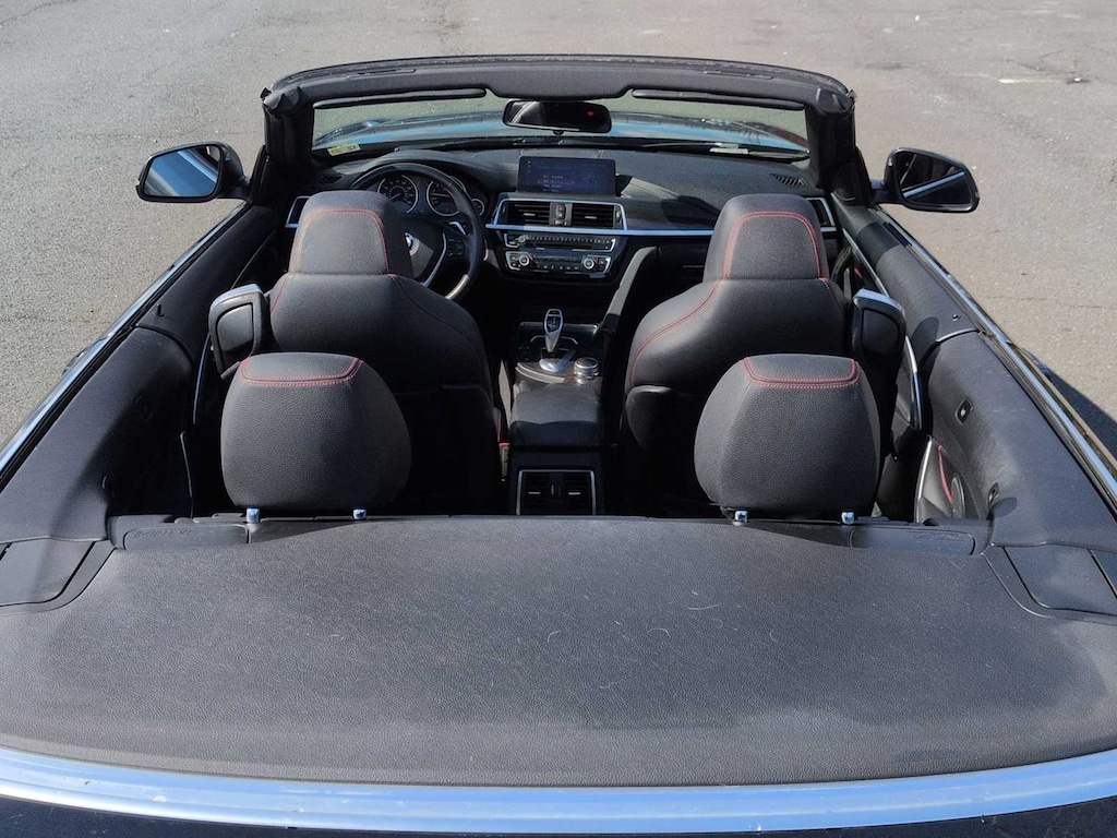 Convenience Package (Active Blind Spot Detection, Heated Front Seats, and Lumbar Support), Navigation System, 4-Wheel Disc Brakes, 9 Speakers, ABS brakes, Air Conditioning, Alloy wheels, AM/FM Radio, AM/FM radio: SiriusXM, Anti-whiplash front head restraints, Apple CarPlay Compatibility, Apple CarPlay Compatibility w/1 Year Trial, Auto-dimming door mirrors, Auto-dimming Rear-View mirror, Automatic temperature control, Brake assist, Bumpers: body-color, Convertible HardTop, Convertible roof lining, Convertible roof wind blocker, Delay-off headlights, Driver door bin, Driver vanity mirror, Dual front impact airbags, Dual front side impact airbags, Electronic Stability Control, Emergency communication system: BMW Assist eCall, Exterior Parking Camera Rear, Four wheel independent suspension, Front anti-roll bar, Front Bucket Seats, Front Center Armrest, Front dual zone A/C, Front fog lights, Front reading lights, Fully automatic headlights, Garage door transmitter, Genuine wood console insert, Genuine wood dashboard insert, Genuine wood door panel insert, Glass rear window, Hands-Free Bluetooth & USB Audio Connection, HD Radio, Heated door mirrors, Heated Steering Wheel, Hi-Fi Sound System, Illuminated entry, Instrument Cluster w/Extended Contents, Integrated roll-over protection, Knee airbag, Leather Shift Knob, Leather steering wheel, Low tire pressure warning, Memory seat, Neck Warmer, Occupant sensing airbag, Outside temperature display, Panic alarm, Passenger door bin, Passenger vanity mirror, Power convertible roof, Power door mirrors, Power driver seat, Power Front Seats, Power passenger seat, Power steering, Power windows, Radio data system, Rain sensing wipers, Rear air conditioning, Rear anti-roll bar, Rear reading lights, Rear seat center armrest, Rear window defroster, Remote keyless entry, Security system, SensaTec Upholstery, SiriusXM Satellite Radio, Speed control, Speed-sensing steering, Speed-Sensitive Wipers, Sport Seats, Sport steering wheel, Steering wheel mounted audio controls, Tachometer, Telescoping steering wheel, Tilt steering wheel, Traction control, Trip computer, Turn signal indicator mirrors, Variably intermittent wipers, and Wheels: 18 x 8 Double-Spoke Orbit Grey.