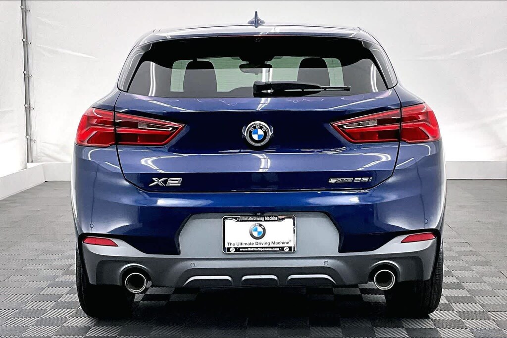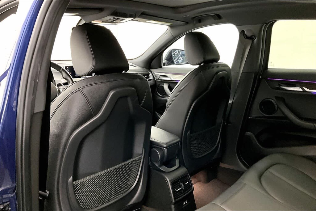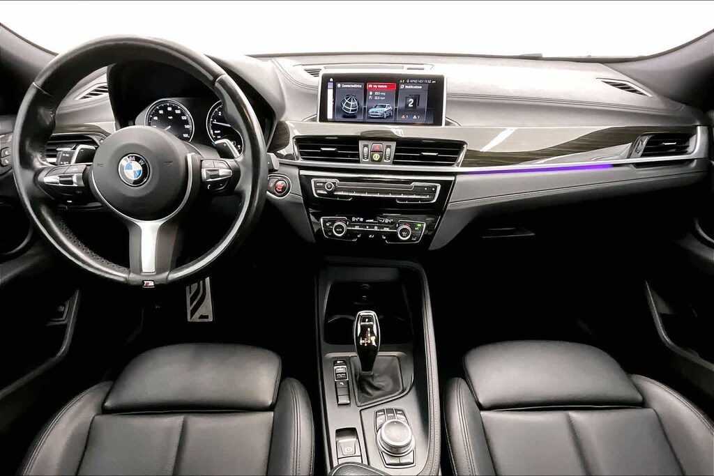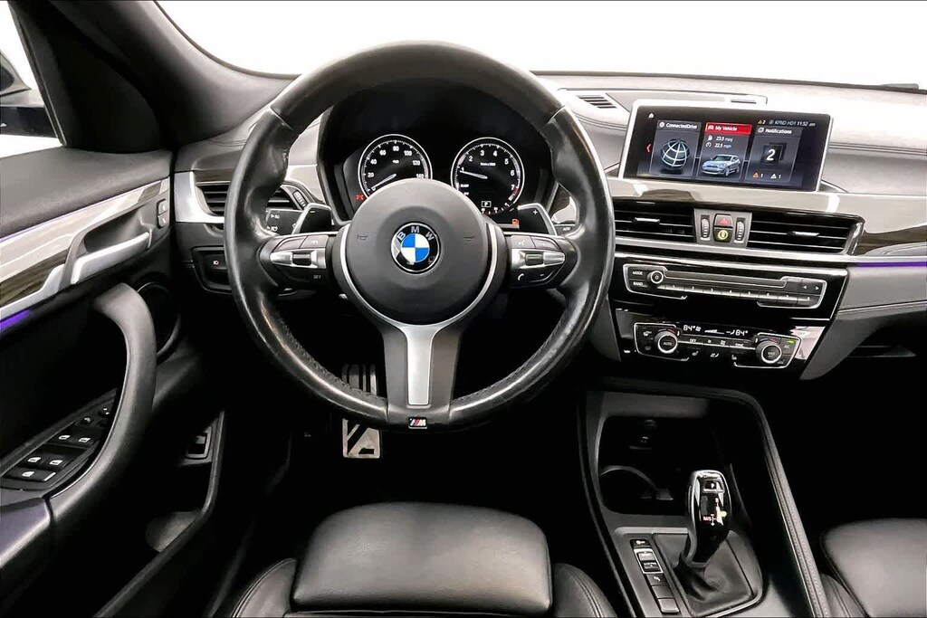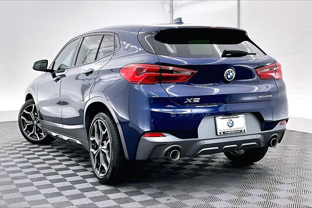 Clean CARFAX. Mediterranean Blue Metallic 2020 BMW X2 sDrive28i FWD 8-Speed Automatic 2.0L 4-Cylinder DOHC 16V TwinPower Turbo 3.20 Axle Ratio, 4-Wheel Disc Brakes, 7 Speakers, ABS brakes, Air Conditioning, Alloy wheels, AM/FM radio, Apple CarPlay Compatibility, Auto High-beam Headlights, Auto-Dimming Interior & Exterior Mirrors, Auto-Dimming Rear-View Mirror, Automatic temperature control, Brake assist, Bumpers: body-color, Comfort Access Keyless Entry, Compass, Convenience Package, Delay-off headlights, Driver door bin, Driver vanity mirror, Dual front impact airbags, Dual front side impact airbags, DVD Area Coding (North America), Electronic Stability Control, Emergency communication system: BMW Assist eCall, Exterior Parking Camera Rear, Four wheel independent suspension, Front anti-roll bar, Front Bucket Seats, Front Center Armrest, Front dual zone A/C, Front fog lights, Front reading lights, Front Sport Bucket Seats, Heated door mirrors, Heated Front Seats, Heated Front Seats & Steering Wheel, Heated Steering Wheel, Hi-Fi Sound System, Illuminated entry, Knee airbag, Leather Shift Knob, Low tire pressure warning, Lumbar Support, M Sport X Exterior Package, M Sport X Package, M Sport X Package (33A), M Steering Wheel, Memory seat, Navigation System, Occupant sensing airbag, Outside temperature display, Overhead airbag, Panic alarm, Panoramic Moonroof, Passenger door bin, Passenger vanity mirror, Power door mirrors, Power driver seat, Power Front Seats, Power Liftgate, Power passenger seat, Power steering, Power windows, Power-Folding Mirrors, Radio Control US, Radio data system, Radio: Professional w/Bluetooth/USB, Rain sensing wipers, Rear anti-roll bar, Rear reading lights, Rear seat center armrest, Rear window defroster, Rear window wiper, Remote keyless entry, Security system, SensaTec Upholstery, Shadowline Exterior Trim, SiriusXM Satellite Radio, Speed control, Speed-sensing steering, Speed-Sensitive Wipers, Split folding rear seat, Spoiler, Steering wheel mounted audio controls, Tachometer, Telescoping steering wheel, Tilt steering wheel, Traction control, Trip computer, Turn signal indicator mirrors, Universal Garage-Door Opener, Variably intermittent wipers, Wheels: 18 x 7.5 Y-Spoke (Style 566), Wheels: 19 x 8 Bi-color (Style 722M), Without Lines Designation Outside.