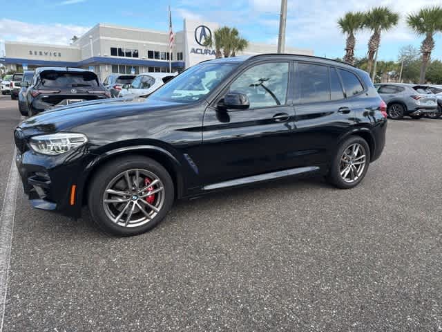 This 2021 BMW X3 M40i in Black Sapphire Metallic, features Connected Package Pro, Premium Package (Head-Up Display, Heated Front Seats, and Heated Steering Wheel), Shadowline Package (Extended Shadowline Trim), Wireless Charging (DISC) (Enhanced USB & Bluetooth (DISC)), 12 Speakers, 3.385 Axle Ratio, 4-Wheel Disc Brakes, ABS brakes, Air Conditioning, Alloy wheels, AM/FM radio: SiriusXM with 360L, Ambient Lighting, Apple CarPlay & Android Auto Compatibility, Auto High-beam Headlights, Auto-dimming door mirrors, Auto-dimming Rear-View mirror, Automatic temperature control, BMW Assist eCall, BMW TeleServices, Brake assist, Bumpers: body-color, ConnectedDrive Services, Dark Oak Wood Trim, Delay-off headlights, Driver door bin, Driver vanity mirror, Dual front impact airbags, Dual front side impact airbags, Electronic Stability Control, Emergency communication system: BMW Assist eCall, Exterior Parking Camera Rear, Four wheel independent suspension, Front anti-roll bar, Front Bucket Seats, Front Center Armrest, Front dual zone A/C, Front fog lights, Front reading lights, Fully automatic headlights, Garage door transmitter, harman/kardon Surround Sound System, Heated door mirrors, Hi-Fi Sound System, Illuminated entry, Knee airbag, Live Cockpit Pro w/Navigation, Low tire pressure warning, Lumbar Support, M Sport Brakes w/Red Calipers, Memory seat, Navigation System, Occupant sensing airbag, Outside temperature display, Overhead airbag, Panic alarm, Passenger door bin, Passenger vanity mirror, Power door mirrors, Power driver seat, Power Front Seats, Power Liftgate, Power moonroof, Power passenger seat, Power steering, Power windows, Radio Control US, Radio data system, Radio: AM/FM Stereo w/HD, Rain sensing wipers, Rear air conditioning, Rear anti-roll bar, Rear reading lights, Rear seat center armrest, Rear window defroster, Rear window wiper, Remote keyless entry, Roof rack: rails only, Security system, SensaTec Upholstery, SiriusXM Satellite Radio, SiriusXM w/360L, Speed control, Speed-sensing steering, Speed-Sensitive Wipers, Split folding rear seat, Spoiler, Sport Bucket Seats, Sport steering wheel, Steering wheel mounted audio controls, Tachometer, Telescoping steering wheel, Tilt steering wheel, Traction control, Trailer Hitch, Trip computer, Turn signal indicator mirrors, Variably intermittent wipers, Wheels: 19 x 7.5 M Double-Spoke (Style 698M), and WiFi Hotspot: