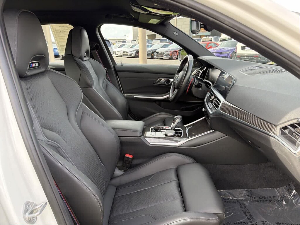 2022 BMW M3 Alpine White 8-Speed Automatic Steptronic 3.0L I6 Turbocharged DOHC 24V LEV3-ULEV70 503hp Android Auto, Apple Car Play & Android Auto, Backup Camera, Blind Spot Monitoring, Bluetooth, CarPlay, Dual Powered Seats, Dual Zone Climate Control, Heated Seats, Keyless Entry, Leather Seats, Multi Zone Climate Control, Navigation System, Parking Sensors, Powered Driver Seat, Premium Sound System, Premium Wheels, Rear Spoiler, USB Port, Ventilated Seats, M3 Competition, 4D Sedan, 3.0L I6 Turbocharged DOHC 24V LEV3-ULEV70 503hp, 8-Speed Automatic Steptronic, RWD, Alpine White, Black Leather. Odometer is 8778 miles below market average!