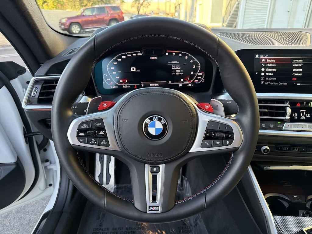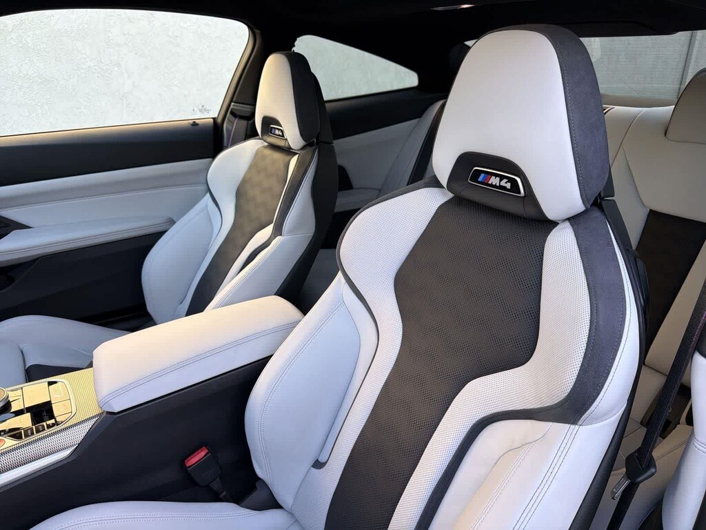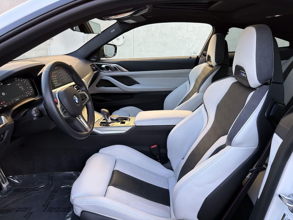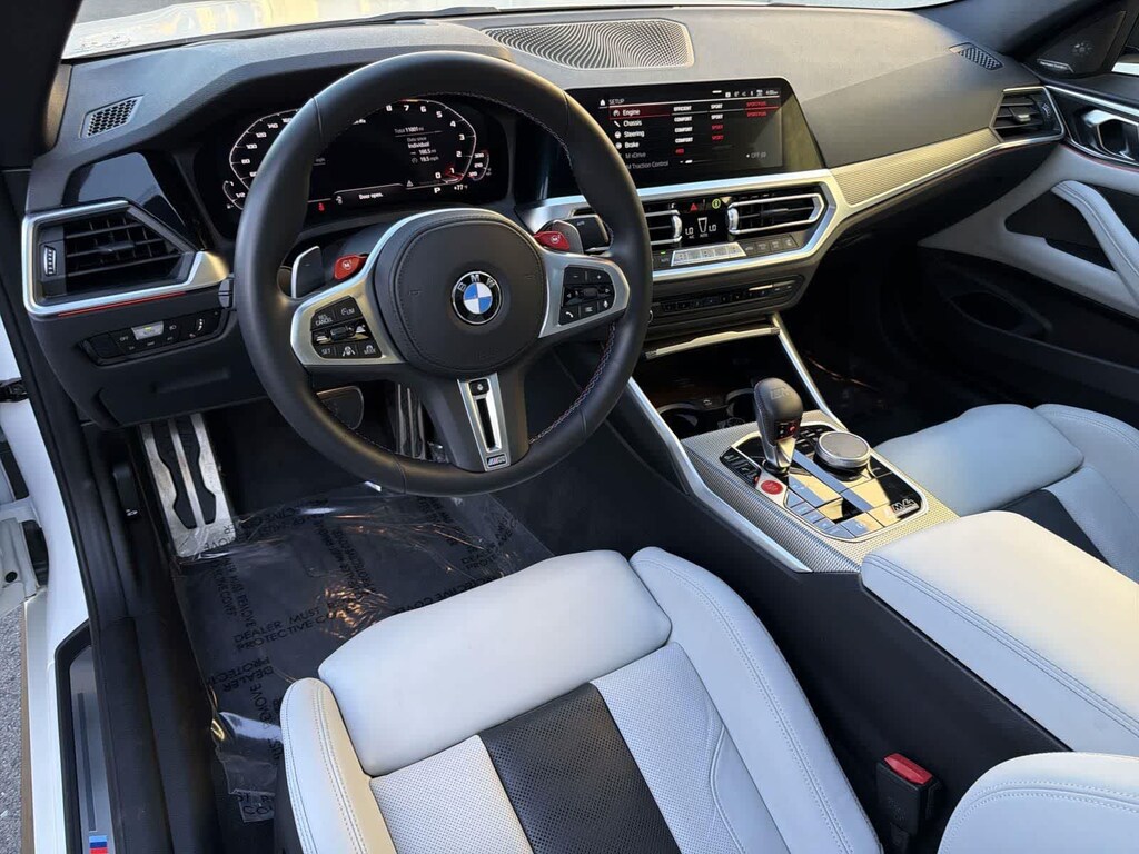 2022 BMW M4 Frozen Brilliant White Metallic 8-Speed Automatic Steptronic 3.0L I6 Turbocharged DOHC 24V LEV3-ULEV70 503hp Adaptive Cruise Control, Android Auto, Apple Car Play & Android Auto, Backup Camera, Bluetooth, CarPlay, Dual Powered Seats, Dual Zone Climate Control, Heated Seats, Keyless Entry, Leather Seats, Multi Zone Climate Control, Navigation System, Parking Sensors, Power Liftgate, Powered Driver Seat, Premium Sound System, Premium Wheels, Rear Spoiler, Remote Start, Sport Exhaust, Sunroof/Moonroof, USB Port, ** ALL WHEEL DRIVE, ** AUXILIARY AUDIO INPUT, ** BACK UP CAMERA, ** BLIND SPOT ALERT, ** CROSS TRAFFIC ALERT, ** FOUR WHEEL DRIVE, ** HEAD-UP DISPLAY, ** KEYLESS ENTRY, ** KEYLESS START, ** LEATHER SEATS, M4 Competition Frozen White, 2D Coupe, 3.0L I6 Turbocharged DOHC 24V LEV3-ULEV70 503hp, 8-Speed Automatic Steptronic, AWD, Frozen Brilliant White Metallic, Silverstone/Black Leather, Head-Up Display, M Carbon Exterior Package, Navigation System. Odometer is 12234 miles below market average!