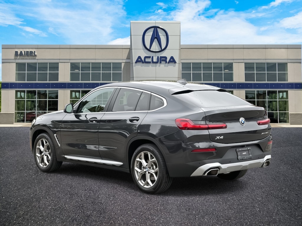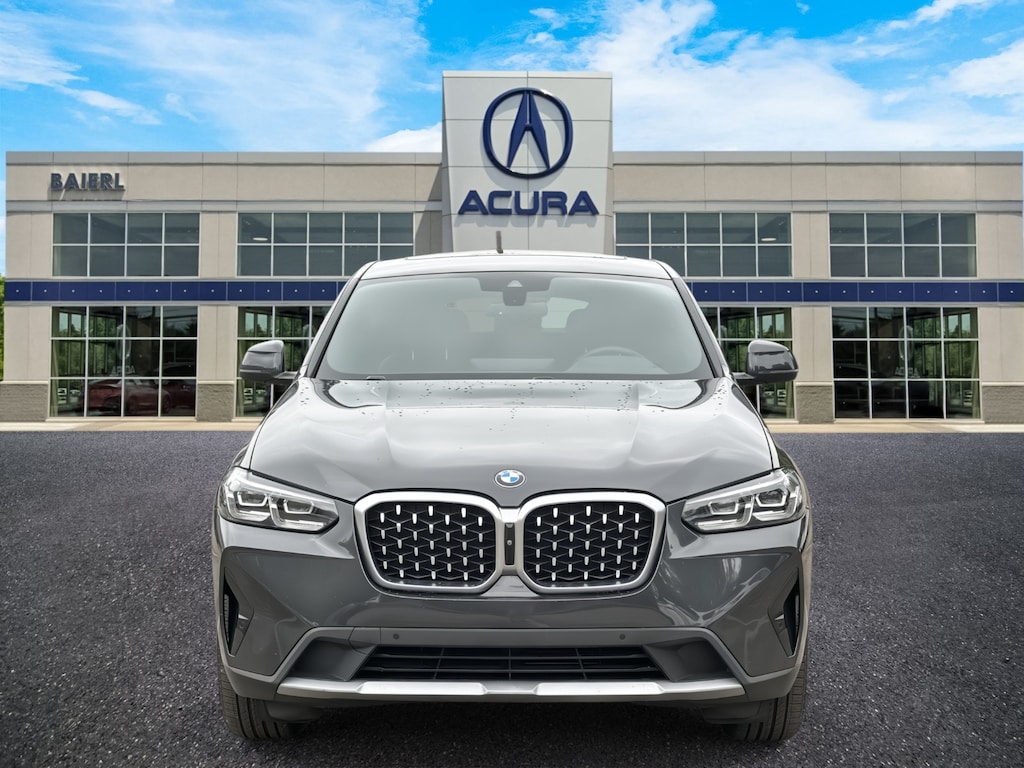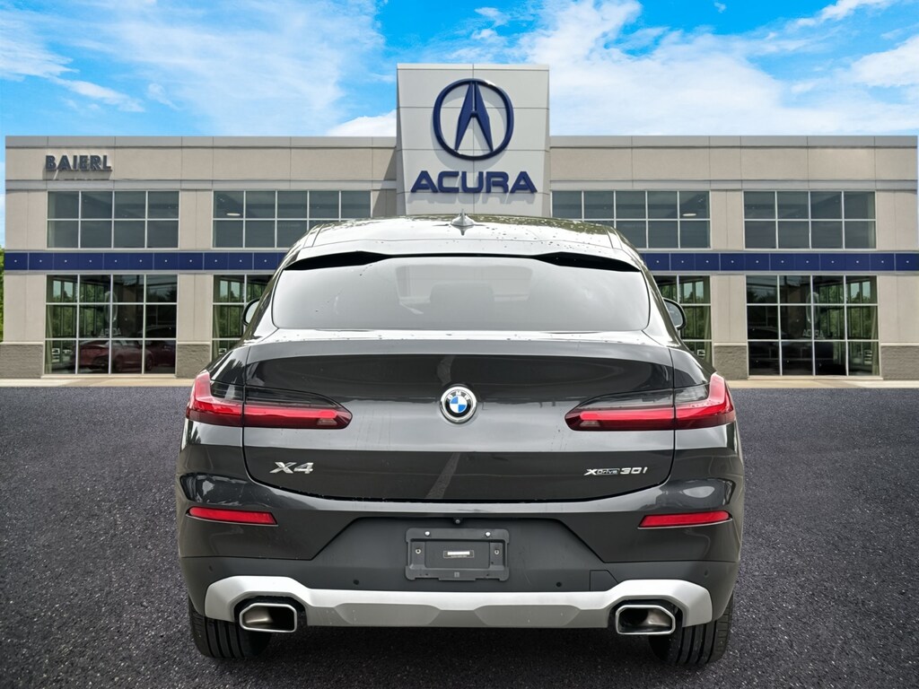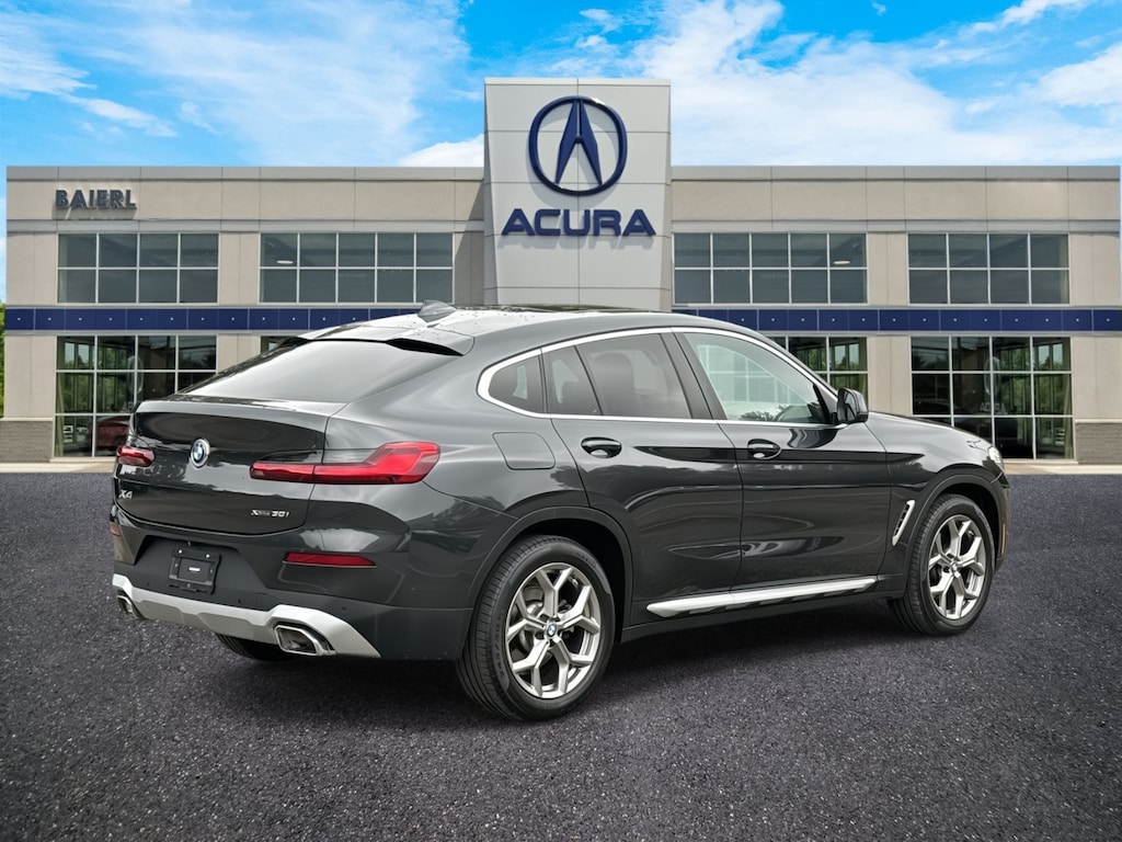Baierl Acura is pumped up to offer this terrific-looking 2022 BMW X4 in Dark Graphite Metallic. This vehicle has been through our award winning factory trained service department*** and comes with the following features; Baierl PREFERRED 60 day / 3000 MILES/$0 DEDUCTIBLE WARRANTY, Theres no back-and-forth, we offer one fair price, X4 xDrive30i, 4D Sport Utility, 2.0L I4 TwinPower Turbo, 8-Speed Automatic Sport, AWD, 12 Speakers, 4-Wheel Disc Brakes, ABS brakes, Air Conditioning, AM/FM radio: SiriusXM with 360L, Anti-whiplash front head restraints, Apple CarPlay & Android Auto Compatibility, Auto-dimming door mirrors, Auto-dimming Rear-View mirror, Automatic temperature control, BMW Assist eCall, BMW TeleServices, Brake assist, Bumpers: body-color, Connected Package Pro, ConnectedDrive Services, Driver door bin, Driver vanity mirror, Dual front impact airbags, Dual front side impact airbags, Electronic Stability Control, Emergency communication system: BMW Assist eCall, Enhanced Bluetooth, Front anti-roll bar, Front Bucket Seats, Front Center Armrest, Front dual zone A/C, Front reading lights, Garage door transmitter, Genuine wood dashboard insert, Genuine wood door panel insert, Heated door mirrors, Hi-Fi Sound System, Knee airbag, Live Cockpit Pro w/Navi, Low tire pressure warning, Memory seat, Navigation System, Occupant sensing airbag, Overhead airbag, Panic alarm, Passenger vanity mirror, Perforated SensaTec Upholstery, Power door mirrors, Power driver seat, Power Front Seats, Power Liftgate, Power moonroof: Panorama, Power passenger seat, Power steering, Power windows, Radio Control US, Radio data system, Radio: AM/FM Audio System, Rear air conditioning, Rear anti-roll bar, Rear reading lights, Rear seat center armrest, Rear window defroster, Security system, SiriusXM w/360L, Speed control, Split folding rear seat, Spoiler, Sport Seats, Sport steering wheel, Tachometer, Telescoping steering wheel, Tilt steering wheel, Trip computer, Turn signal indicator mirrors, WiFi Hotspot.