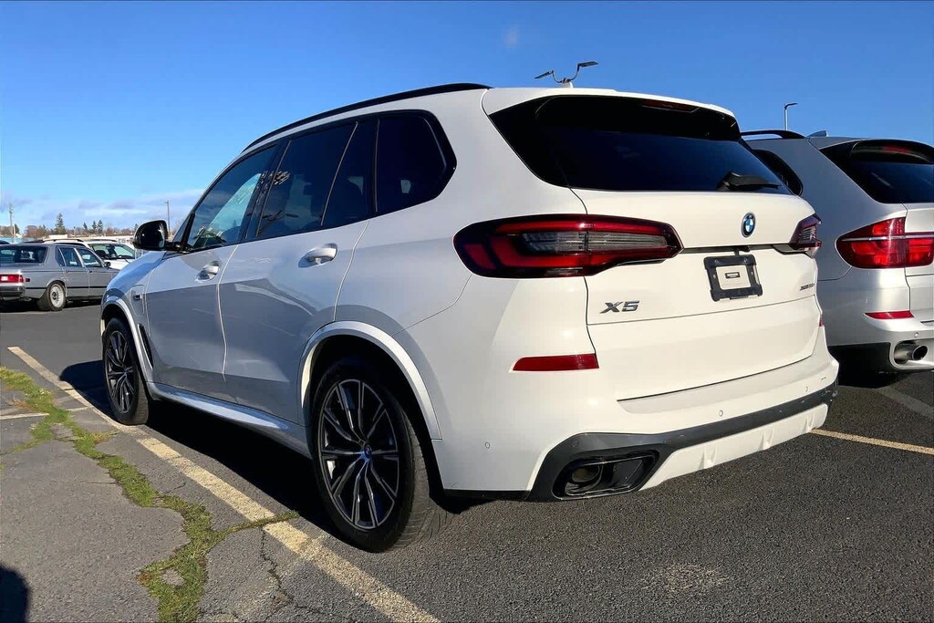 CARFAX One-Owner. Clean CARFAX. Alpine White 2022 BMW X5 xDrive45e AWD 8-Speed Automatic Sport 3.0L I6 DOHC 24V TwinPower Turbo Cognac Leather, 10 Speakers, 4-Wheel Disc Brakes, 4-Zone Automatic Climate Control, ABS brakes, Active Driving Assistant Pro, Active Park Distance Control, Aerodynamic Kit, Air Conditioning, Alloy wheels, AM/FM radio: SiriusXM with 360L, AM/FM Stereo, Apple CarPlay & Android Auto Compatibility, Auto High-beam Headlights, Auto tilt-away steering wheel, Auto-dimming door mirrors, Auto-dimming Rear-View mirror, Auto-leveling suspension, Automatic temperature control, Axle Ratio: TBD, BMW Assist eCall, BMW TeleServices, Brake assist, Bumpers: body-color, Climate Comfort Package, Compass, Connected Package Pro, Delay-off headlights, Drive Recorder, Driver door bin, Driver vanity mirror, Driving Assistance Professional Package, Dual front impact airbags, Dual front side impact airbags, Electronic Stability Control, Emergency communication system: BMW Assist eCall, Enhanced Bluetooth, Executive Package, Extended Shadowline Trim, Extended Traffic Jam Assistant, Exterior Parking Camera Rear, Four wheel independent suspension, Front & Rear Heated Seats, Front anti-roll bar, Front Bucket Seats, Front Center Armrest, Front dual zone A/C, Front reading lights, Fully automatic headlights, Garage door transmitter, Genuine wood console insert, Genuine wood dashboard insert, Genuine wood door panel insert, Gesture Control, Glass Controls, Head restraints memory, Head-Up Display, Heated door mirrors, Heated Front Seats, Heated front seats, Heated Front Seats, Armrests & Steering Wheel, Hi-Fi Sound System, High-Gloss Shadowline Roof Rails, Icon Adaptive LED Headlights w/Laserlight, Illuminated entry, Knee airbag, Leather Shift Knob, Leather steering wheel, Low tire pressure warning, Lumbar Support, M Sport Package, M Sport Package (337), M Steering Wheel, Memory seat, Multi-Contour Seats, Navigation System, Occupant sensing airbag, Outside temperature display, Overhead airbag, Panic alarm, Panoramic Sky Lounge LED Roof, Parking Assistance Package, Parking Assistant Plus, Passenger door bin, Passenger vanity mirror, Power adjustable front head restraints, Power door mirrors, Power driver seat, Power Front Seats, Power moonroof, Power passenger seat, Power steering, Power windows, Radio data system, Rain sensing wipers, Rear anti-roll bar, Rear Manual Side Window Shades, Rear reading lights, Rear seat center armrest, Rear window defroster, Rear window wiper, Rear-View Camera, Remote keyless entry, Roof rack: rails only, Security system, Sensatec Upholstery, Shadowline Exterior Trim, SiriusXM w/360L, Speed control, Speed-sensing steering, Speed-Sensitive Wipers, Split folding rear seat, Spoiler, Sport Seats, Sport steering wheel, Steering wheel memory, Steering wheel mounted audio controls, Surround View w/3D View, Tachometer, Telescoping steering wheel, Tilt steering wheel, Traction control, Trip computer, Turn signal indicator mirrors, Variably intermittent wipers, Vernasca Leather Upholstery, Wheels: 19 x 9 V-Spoke (Style 734), Wheels: 20 x 9 M Star-Spoke Bi-Color, Cognac Leather.