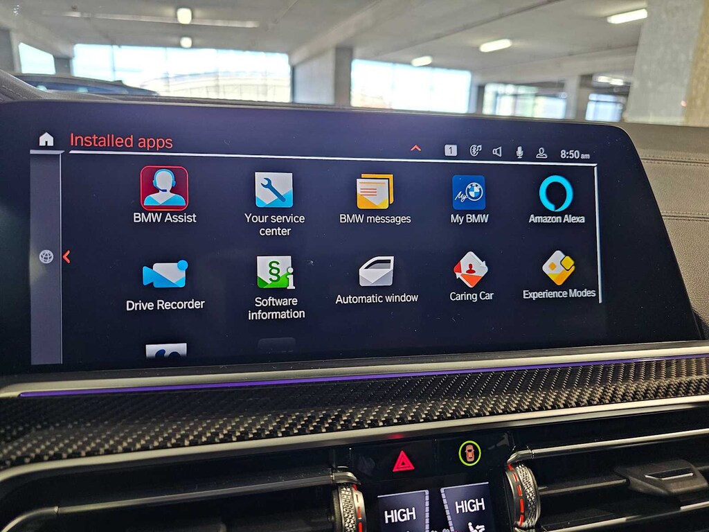 EXECUTIVE PACKAGE Glass Controls, Head-Up Display, Gesture Control, Rear Manual Side Window Shades, Panoramic Sky Lounge LED Roof, Icon Adaptive LED Headlights w/Laserlight, WHEELS: 22 M DOUBLE-SPOKE BLACK (STYLE 742M) 22 x 9.5 front and 22 x 10.5 rear, Tires: 275/35R22 Fr & 315/30R22 Rr Performance, Non run-flat, Space-Saver Spare, Increased Top Speed Limiter, DRIVING ASSISTANCE PROFESSIONAL PACKAGE Active Driving Assistant Pro, Active Cruise Control w/Stop & Go, Active Lane Keeping Assistant w/side collision avoidance, steering and traffic jam assistant, automatic lane change, evasion assistant and Cross-Traffic Alert Front, Extended Traffic Jam Assistant, For limited access highways, PARKING ASSISTANCE PACKAGE Active Park Distance Control, Drive Recorder, Surround View w/3D View, Rear View Camera, Parking Assistant Plus, CLIMATE COMFORT PACKAGE Front & Rear Heated Seats, Heated Front Seats Armrests & Steering Wheel. BMW M50i with Manhattan Green Metallic exterior and Black interior features a 8 Cylinder Engine with 523 HP at 5500 RPM*.