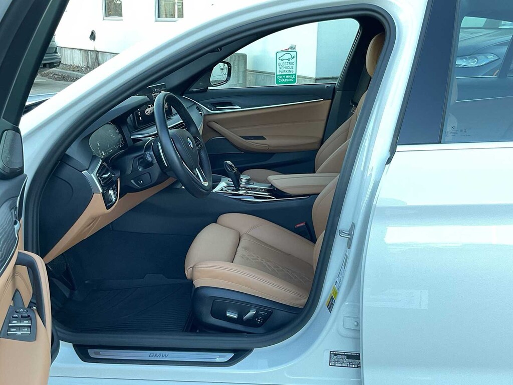 5 Series 530e iPerformance is nicely equipped with Connected Package Pro, Premium Package (harman/kardon Surround Sound System, Head-Up Display, Heated Front Seats, and Power Tailgate), AWD, Cognac Artificial Leather, 12 Speakers, 4-Wheel Disc Brakes, ABS brakes, Air Conditioning, Alloy wheels, AM/FM radio: SiriusXM, Apple CarPlay & Android Auto Compatibility, Auto High-beam Headlights, Auto tilt-away steering wheel, Auto-dimming door mirrors, Auto-dimming Rear-View mirror, Automatic temperature control, BMW Assist eCall, BMW TeleServices, Brake assist, Bumpers: body-color, ConnectedDrive Services, Delay-off headlights, Driver door bin, Driver Lumbar Support Only (DISC), Driver vanity mirror, Dual front impact airbags, Dual front side impact airbags, Electronic Stability Control, Emergency communication system: BMW Assist eCall, Enhanced USB & Bluetooth w/Smartphone Integration, Exterior Parking Camera Rear, Four wheel independent suspension, Front anti-roll bar, Front Bucket Seats, Front Center Armrest, Front dual zone A/C, Front reading lights, Fully automatic headlights, Garage door transmitter, Genuine wood console insert, Genuine wood dashboard insert, Genuine wood door panel insert, Heated door mirrors, Heated Steering Wheel, Hi-Fi Sound System, Illuminated entry, Leather Shift Knob, Leather steering wheel, Live Cockpit Pro w/Navi, Low tire pressure warning, Lumbar Support, Memory seat, Navigation System, Occupant sensing airbag, Outside temperature display, Overhead airbag, Panic alarm, Passenger door bin, Passenger vanity mirror, Perforated Sensatec Upholstery, Power door mirrors, Power driver seat, Power Front Seats, Power moonroof, Power passenger seat, Power steering, Power windows, Radio data system, Radio: AM/FM Audio System, Rain sensing wipers, Rear anti-roll bar, Rear reading lights, Rear seat center armrest, Rear window defroster, Remote keyless entry, Security system, SiriusXM Satellite Radio, Speed control, Speed-sensing steering, Speed-Sensitive Wipers, Split folding rear seat, Sport Seats, Sport steering wheel, Steering wheel memory, Steering wheel mounted audio controls, Tachometer, Telescoping steering wheel, Tilt steering wheel, Traction control, Trip computer, Turn signal indicator mirrors, Variably intermittent wipers, Wheels: 19 x 8 V-Spoke Burnished Orbit Gray, and Wireless Charging. Recent Arrival! Odometer is 11439 miles below market average!