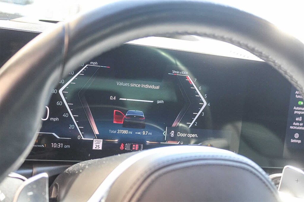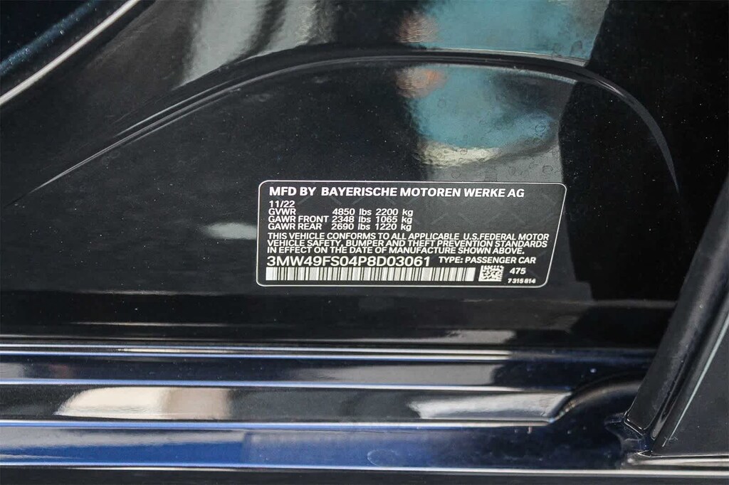 10 Speakers, 4-Wheel Disc Brakes, ABS brakes, Active Blind Spot Detection, Active Driving Assistant, Active Park Distance Control, Air Conditioning, Alloy wheels, AM/FM radio: SiriusXM, Apple CarPlay & Android Auto Compatibility, Apple CarPlay Compatibility, Auto High-beam Headlights, Auto-dimming door mirrors, Auto-dimming Rear-View mirror, Automatic temperature control, BMW Assist eCall, BMW Curved Display, BMW Curved Display w/HUD, BMW M 50 Years Emblems (DISC), BMW TeleServices, Brake assist, Bumpers: body-color, Compass, Connected Package Pro, ConnectedDrive Services, Delay-off headlights, Driver door bin, Driver Lumbar Support, Driver vanity mirror, Driving Assistance Package, Dual front impact airbags, Dual front side impact airbags, Electronic Stability Control, Emergency communication system: BMW Assist eCall, Enhanced USB & Bluetooth Plus Smartphone Integration, Extended Shadowline Trim, Exterior Parking Camera Rear, Four wheel independent suspension, Front anti-roll bar, Front Bucket Seats, Front Center Armrest, Front dual zone A/C, Front reading lights, Fully automatic headlights, Garage door transmitter, harman/kardon Surround Sound System, Heated door mirrors, Heated Front Seats, Heated Steering Wheel, Hi-Fi Sound System, Illuminated entry, Increased Top Speed Limiter, Knee airbag, Lane Departure Warning System, Leather Shift Knob, Leather steering wheel, LED Lights w/Cornering Lights, Low tire pressure warning, M Shadowline Lights, M Sport Brakes w/Red Calipers, M Sport Package Pro, Memory seat, Navigation System, Occupant sensing airbag, Outside temperature display, Overhead airbag, Panic alarm, Park Distance Control, Parking Assistance Package, Parking Assistant Plus, Passenger door bin, Passenger vanity mirror, Perforated Sensatec Upholstery, Power door mirrors, Power driver seat, Power Front Seats, Power moonroof, Power passenger seat, Power steering, Power windows, Premium Package, Radio data system, Radio: AM/FM Audio System, Rain sensing wipers, Rear air conditioning, Rear anti-roll bar, Rear reading lights, Rear seat center armrest, Rear window defroster, Rear-View Camera, Remote keyless entry, Security system, Shadowline Package, SiriusXM Satellite Radio w/1 Year Subscription, Speed control, Speed-sensing steering, Speed-Sensitive Wipers, Split folding rear seat, Spoiler, Sport Seats, Sport steering wheel, Steering wheel mounted audio controls, Surround View w/3D View, Tachometer, Telescoping steering wheel, Tilt steering wheel, Traction control, Trip computer, Turn signal indicator mirrors, Variably intermittent wipers, Wheels: 18 x 7.5 M Double-Spoke Bicolor, Wheels: 19 x 8 Fr & 19 x 8.5 Rr (Style 792M), Widescreen Display, Wireless Device Charging.