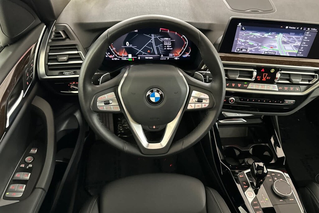 Alpine White 2023 BMW X3 xDrive30i AWD 8-Speed Automatic Sport 2.0L I4 TwinPower Turbo Apple CarPlay & Android Auto Compatibility, Auto-dimming Rear-View mirror, Automatic temperature control, Comfort Access Keyless Entry, Connected Package Pro, Convenience Package, Driver Lumbar Support, Enhanced USB & Bluetooth w/Smartphone Integration, Fully automatic headlights, Garage door transmitter, Heated door mirrors, Heated Front Seats, Heated Steering Wheel, Memory seat, Panoramic Moonroof, Perforated SensaTec Upholstery, Power driver seat, Rain sensing wipers, Wheels: 19 x 7.5 Y-Spoke (Style 693).