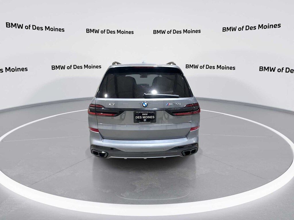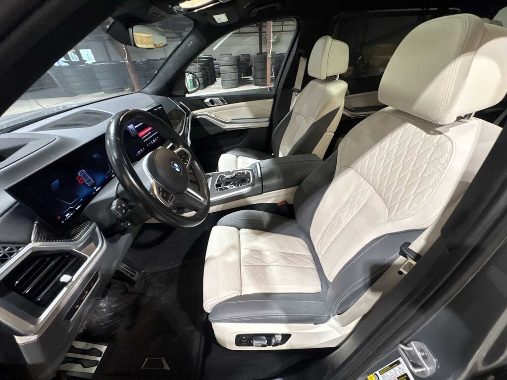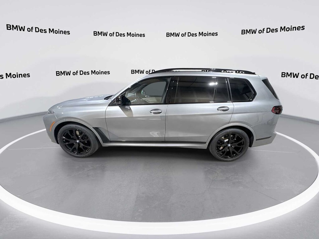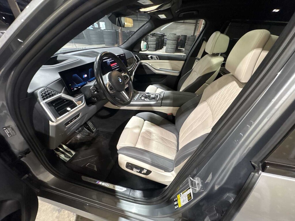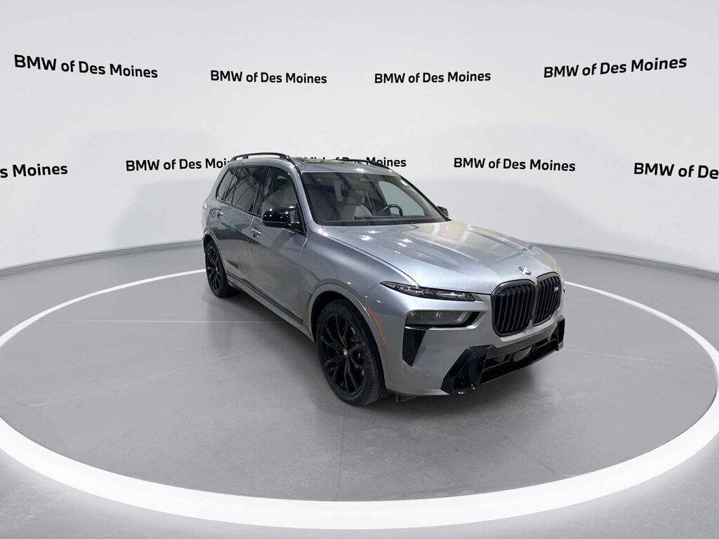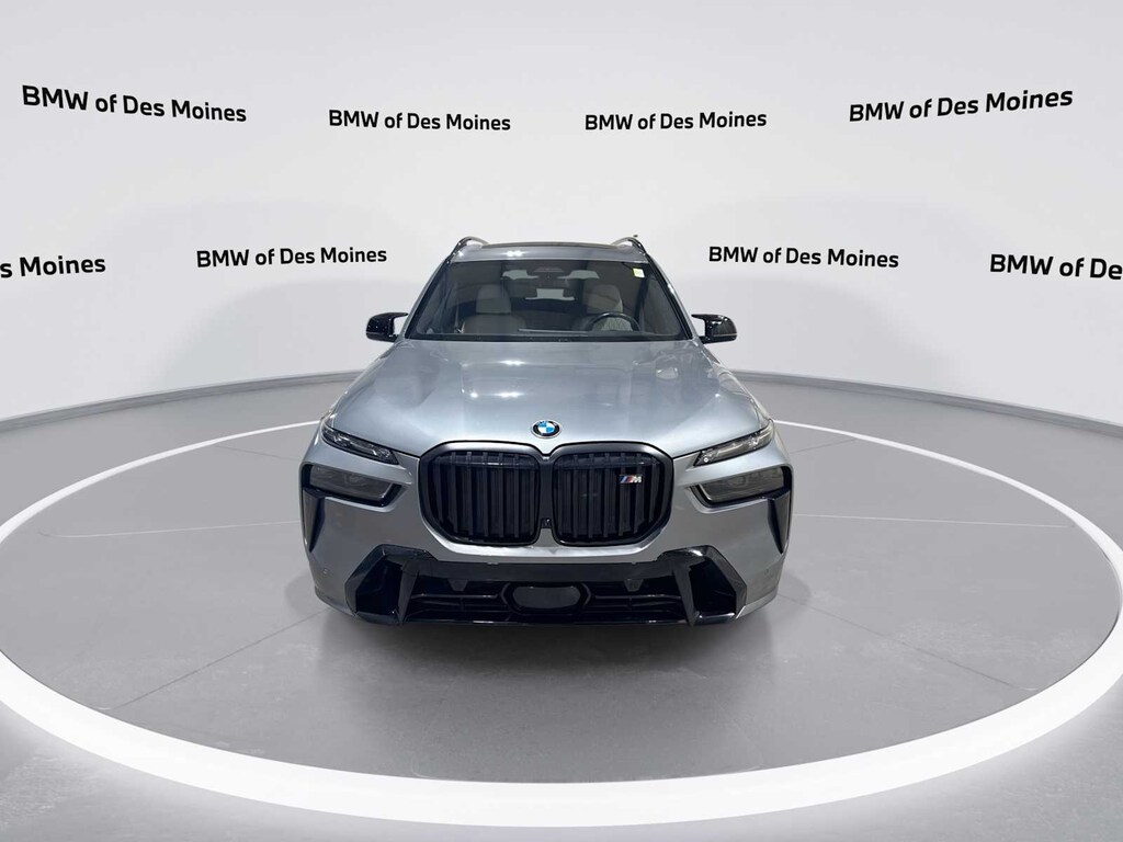 X7 M60i is nicely equipped with Climate Comfort Package (5-Zone Automatic Climate Control, Front & Rear Heated Seats, and Front Ventilated Seats), Connected Package Pro, Driving Assistance Professional Package (Active Cruise Control w/Stop & Go, Active Driving Assistant Pro, Active Lane Keeping Assistant, Highway Assistant, and Traffic Jam Assistant), Executive Package (Front Massaging Seats, Glass Controls, Heated & Cooled Cup Holders, and Panoramic Sky Lounge LED Roof), M Sport Package Pro, M Sport Professional Package (Extended Shadowline Trim and M Sport Brakes w/Black Calipers), 16 Speakers, 2nd Row Captains Chairs, 3.15 Axle Ratio, 3rd row seats: split-bench, 4-Wheel Disc Brakes, ABS brakes, Adaptive suspension, Air Conditioning, Alloy wheels, AM/FM radio: SiriusXM with 360L, AM/FM Stereo, Apple CarPlay & Android Auto Compatibility, Apple CarPlay Compatibility, Auto High-beam Headlights, Auto tilt-away steering wheel, Auto-dimming door mirrors, Auto-dimming Rear-View mirror, Auto-leveling suspension, Automatic temperature control, BMW Assist eCall, BMW TeleServices, Brake assist, Bumpers: body-color, Carbon Fiber Trim, Compass, ConnectedDrive Services, Crystal Headlights, Delay-off headlights, Door auto-latch, Driver door bin, Driver vanity mirror, Dual front impact airbags, Dual front side impact airbags, Electronic Stability Control, Emergency communication system: BMW Assist eCall, Extended Merino Leather Upholstery, Exterior Parking Camera Rear, Four wheel independent suspension, Front anti-roll bar, Front Bucket Seats, Front Center Armrest, Front dual zone A/C, Front reading lights, Fully automatic headlights, Garage door transmitter, Genuine wood console insert, Genuine wood dashboard insert, Genuine wood door panel insert, Gesture Control, harman/kardon Surround Sound System, harman/kardonî Speakers, Head restraints memory, Heads-Up Display, Heated door mirrors, Heated front seats, Heated Multi-Contour Seats, Heated steering wheel, Illuminated entry, Increased Top Speed Limiter, Knee airbag, Leather Dashboard, Leather steering wheel, Live Cockpit Pro, Low tire pressure warning, Memory seat, Navigation system: BMW Maps Navigation, Occupant sensing airbag, Outside temperature display, Overhead airbag, Panic alarm, Passenger door bin, Passenger vanity mirror, Personal eSIM 5G, Power adjustable front head restraints, Power door mirrors, Power driver seat, Power Front Seats, Power moonroof: Panorama, Power passenger seat, Power steering, Power windows, Radio data system, Rain sensing wipers, Rear air conditioning, Rear anti-roll bar, Rear dual zone A/C, Rear reading lights, Rear seat center armrest, Rear window defroster, Rear window wiper, Reclining 3rd row seat, Remote keyless entry, Security system, SiriusXM w/360L & 1 Year Platinum Plan Subscription, Speed control, Speed-sensing steering, Speed-Sensitive Wipers, Split folding rear seat, Spoiler, Sport steering wheel, Steering wheel memory, Steering wheel mounted audio controls, Tachometer, Telescoping steering wheel, Tilt steering wheel, Traction control, Trip computer, Turn signal indicator mirrors, Variably intermittent wipers, Wheels: 22 x 9.5 Fr & 22 x 10.5 Rr Double-Spoke, Wheels: 22 x 9.5 Fr & 22 x 10.5 Rr V-Spoke, and Wireless Charging Device. Recent Arrival!