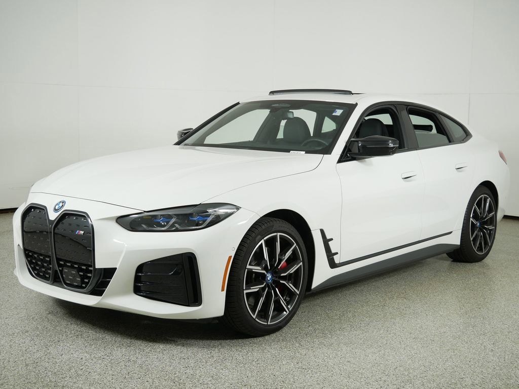 One Owner, i4 M50, 4D Hatchback, Electric Motor, Single-Speed Automatic, AWD, Alpine White, Black Artificial Leather, 4-Wheel Disc Brakes, ABS brakes, Active Driving Assistant Pro, Active Park Distance Control, Adaptive suspension, BMW Curved Display w/HUD, Connected Package Pro, Driving Assistance Professional Package, Extended Shadowline Trim, Extended Traffic Jam Assistant, Four wheel independent suspension, harman/kardon Surround Sound System, Heated Steering Wheel, M Shadowline Lights, M Sport Brakes w/Red Calipers, M Sport Package Pro, Parking Assistance Package, Parking Assistant Plus, Premium Package, Rain sensing wipers, Rear-View Camera, Shadowline Package, Steering wheel mounted audio controls, Surround View w/3D View.