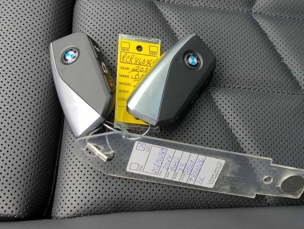 Connected Package Professional, Driving Assistance Professional Package (Active Driving Assistant Pro and Highway Assistant), Premium Package (BMW Curved Display w/HUD, Full LED Lights w/Cornering Lights, Heated Front Seats, Heated Steering Wheel, Interior Camera, Natural Interaction, Parking Assistant Plus, and Premium Content 1), Exterior Parking Camera Rear, Fully automatic headlights, harman/kardonî Sound System, Lumbar Support, Memory seat, Navigation System, Power driver seat, Power Front Seats, Power moonroof, Power passenger seat, SiriusXM Satellite Radio, Sport Seats, Steering wheel mounted audio controls, Veganza Perforated & Quilted Upholstery, Wheels: 20 x 8.5 Fr & 20 x 10 Rr Aerodynamic, 12 Speakers, 4-Wheel Disc Brakes, ABS brakes, Air Conditioning, Alloy wheels, Apple CarPlay & Android Auto Compatibility, Auto tilt-away steering wheel, Auto-dimming door mirrors, Auto-dimming Rear-View mirror, Auto-leveling suspension, Automatic temperature control, Brake assist, Bumpers: body-color, ConnectedDrive Services, Delay-off headlights, Digital Cockpit Plus, Driver door bin, Driver vanity mirror, Dual front impact airbags, Dual front side impact airbags, Electronic Stability Control, Emergency communication system: BMW Assist eCall, Fine Wood Grey Blue Open Pore Ash Trim, Four wheel independent suspension, Front anti-roll bar, Front Bucket Seats, Front Center Armrest, Front dual zone A/C, Front reading lights, Garage door transmitter, Genuine wood dashboard insert, Genuine wood door panel insert, harman/kardonî Speakers, Head restraints memory, Heated door mirrors, Illuminated entry, Intelligent Emergency Call, Leather steering wheel, Low tire pressure warning, Occupant sensing airbag, Outside temperature display, Overhead airbag, Panic alarm, Passenger door bin, Passenger vanity mirror, Power adjustable front head restraints, Power door mirrors, Power steering, Power windows, Radio data system, Radio: FM Audio System, Rain sensing wipers, Rear anti-roll bar, Rear reading lights, Rear seat center armrest, Rear window defroster, Remote keyless entry, Security system, Speed control, Speed-sensing steering, Speed-Sensitive Wipers, Split folding rear seat, Steering wheel memory, Telescoping steering wheel, Teleservices, Tilt steering wheel, Traction control, Trip computer, Turn signal indicator mirrors, Variably intermittent wipers, and Wheels: 19 x 8.5 Aero Spoke Bi Color Grey.