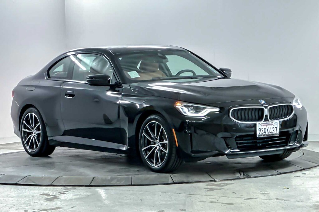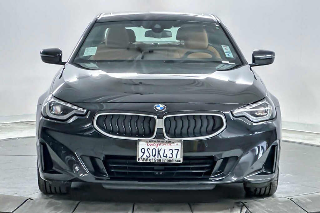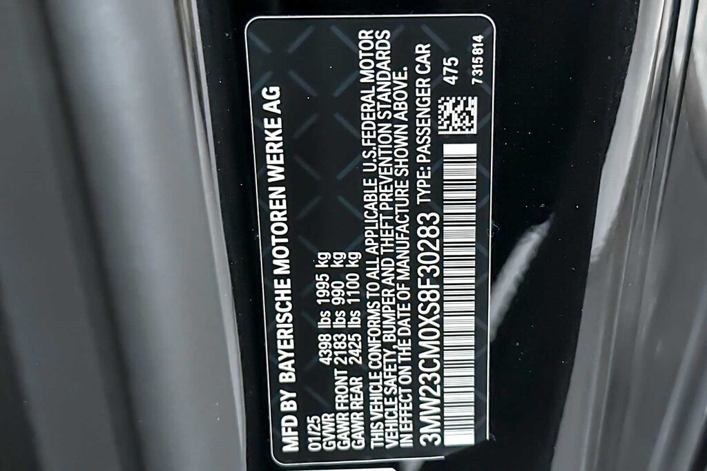 Black Sapphire Metallic 2025 BMW 2 Series 230i RWD 8-Speed Automatic Sport 2.0L I4 16V TwinPower Turbo Adaptive Full LED Lights, Ambient Lighting, Apple CarPlay & Android Auto Compatibility, Automatic High Beams, Automatic temperature control, Comfort Access Keyless Entry, Connected Package Pro, Exterior Parking Camera Rear, harman/kardon Surround Sound System, Heated door mirrors, Heated Front Seats, Heated Steering Wheel, Hi-Fi Sound System, Live Cockpit Pro w/Head-Up Display, Memory seat, Moonroof, Navigation System, Perforated Sensatec Upholstery, Power driver seat, Premium Package, Rain sensing wipers, Universal Garage-Door Opener, Wheels: 18 x 7.5 V-Spoke Bicolor Orbit Grey, Wireless Device Charging.