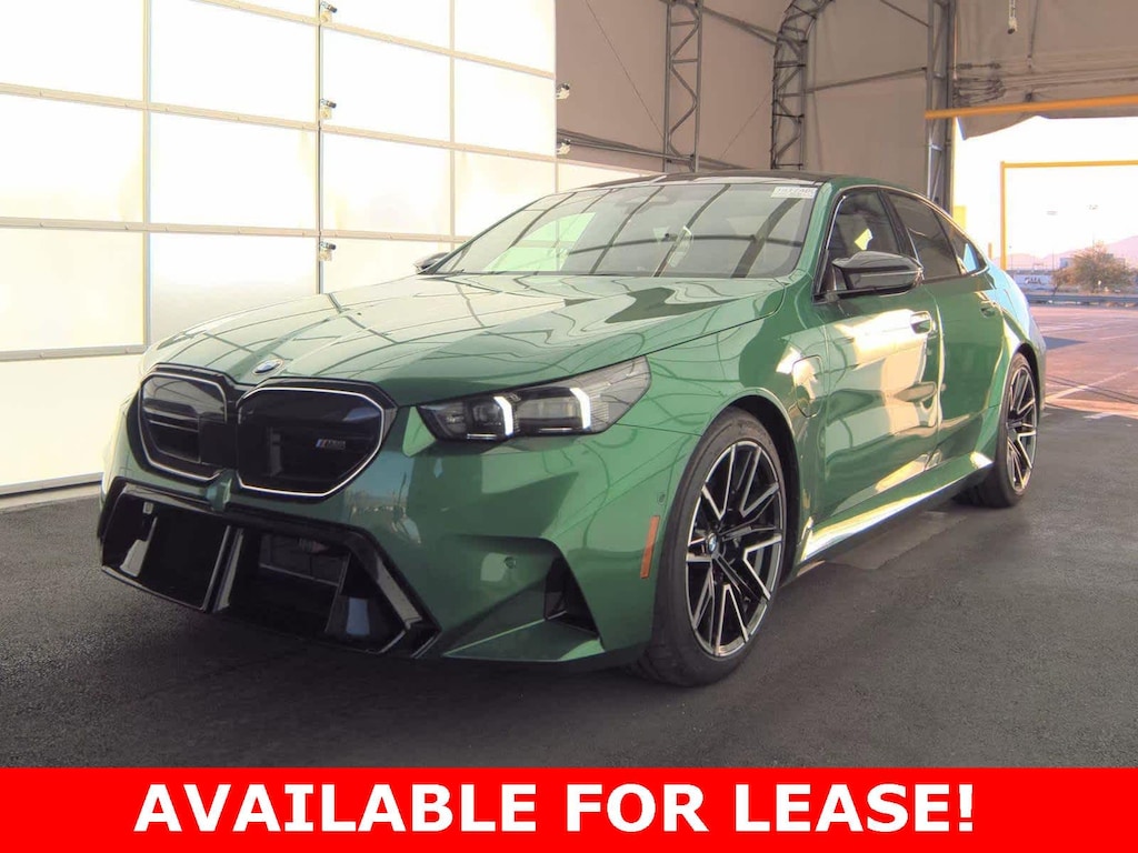 AVAILABLE FOR LEASE!!!! CARFAX One-Owner. Clean CARFAX. Green 2025 BMW M5 AWD 8-Speed Automatic Sport 4.4L V8 Turbocharged DOHC 32V LEV3-SULEV30 18 Speakers, 4-Wheel Disc Brakes, ABS brakes, Adaptive suspension, Air Conditioning, Alloy wheels, AM/FM radio: SiriusXM, Apple CarPlay & Android Auto Compatibility, Auto High-beam Headlights, Auto tilt-away steering wheel, Auto-dimming door mirrors, Auto-dimming Rear-View mirror, Automatic temperature control, BMW Assist eCall, BMW Curved Display w/HUD, BMW TeleServices, Bowers & Wilkins Surround Sound, Brake assist, Bumpers: body-color, Connected Package Pro, ConnectedDrive Services, Delay-off headlights, Driver door bin, Driver vanity mirror, Dual front impact airbags, Dual front side impact airbags, Electronic Stability Control, Emergency communication system: BMW Assist eCall, Extended Merino Leather Upholstery, Exterior Parking Camera Rear, Four wheel independent suspension, Front anti-roll bar, Front Bucket Seats, Front Center Armrest, Front dual zone A/C, Front reading lights, Fully automatic headlights, Garage door transmitter, Heads-Up Display, Heated door mirrors, Heated Front Seats, Heated front seats, Heated steering wheel, Illuminated entry, Leather steering wheel, Low tire pressure warning, M Multi-Function Seats, Memory seat, Navigation System, Occupant sensing airbag, Outside temperature display, Overhead airbag, Panic alarm, Passenger door bin, Passenger vanity mirror, Personal eSIM 5G, Power door mirrors, Power driver seat, Power Front Seats, Power passenger seat, Power steering, Power windows, Radio data system, Radio: AM/FM Audio System, Rain sensing wipers, Rear air conditioning, Rear anti-roll bar, Rear dual zone A/C, Rear reading lights, Rear seat center armrest, Rear window defroster, Remote keyless entry, Security system, SiriusXM Satellite Radio w/1-Year Subscription, Speed control, Speed-sensing steering, Speed-Sensitive Wipers, Split folding rear seat, Sport steering wheel, Steering wheel memory, Steering wheel mounted audio controls, Tachometer, Telescoping steering wheel, Tilt steering wheel, Traction control, Trip computer, Turn signal indicator mirrors, Variably intermittent wipers, Wheels: 20 x 10.5 Fr & 21 x 11 Rr M Dual-Spoke, Wireless Device Charging.