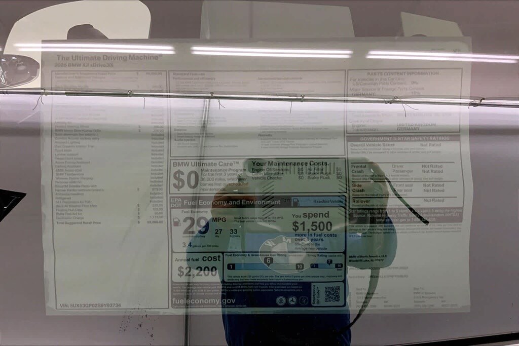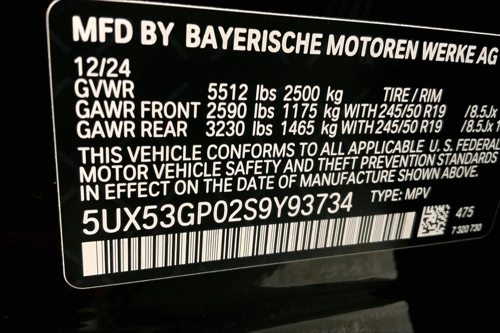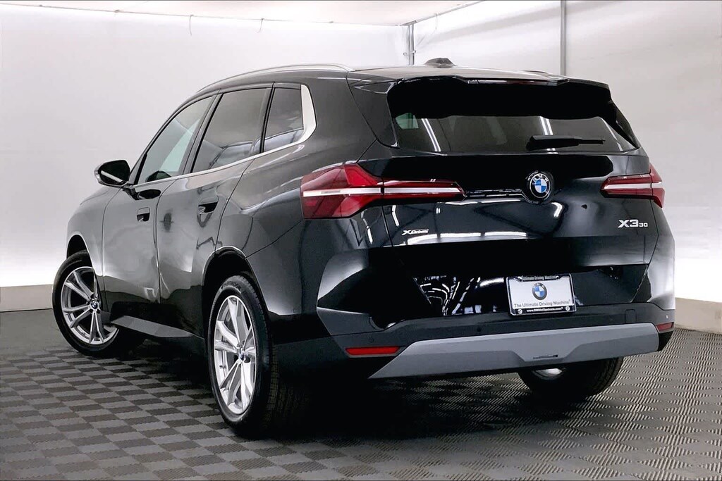 CARFAX One-Owner. Clean CARFAX. Black Sapphire Metallic 2025 BMW X3 30 XDrive AWD 8-Speed Automatic I4 8-Speed Automatic, 12 Speakers, 4-Wheel Disc Brakes, ABS brakes, Air Conditioning, Alloy wheels, AM/FM Radio, AM/FM radio: SiriusXM, Auto High-beam Headlights, Auto-dimming door mirrors, Auto-dimming Rear-View mirror, Automatic temperature control, BMW Iconic Glow Kidney Grille, BMW TeleServices, Brake assist, Bumpers: body-color, Delay-off headlights, Driver door bin, Driver vanity mirror, Dual front impact airbags, Dual front side impact airbags, Electronic Stability Control, Emergency communication system: BMW Assist eCall, Exterior Parking Camera Rear, Four wheel independent suspension, Front anti-roll bar, Front Bucket Seats, Front Center Armrest, Front dual zone A/C, Front reading lights, Fully automatic headlights, Garage door transmitter, Heated door mirrors, Heated Front Seats, Heated front seats, Heated Steering Wheel, Hi-Fi Sound System, Illuminated entry, Knee airbag, Low tire pressure warning, Memory seat, Navigation, Navigation system: BMW Maps Navigation, Occupant sensing airbag, Outside temperature display, Overhead airbag, Overhead console, Panic alarm, Passenger door bin, Passenger vanity mirror, Power door mirrors, Power driver seat, Power Front Seats, Power Liftgate, Power passenger seat, Power steering, Power windows, Radio data system, Rain sensing wipers, Rear anti-roll bar, Rear reading lights, Rear seat center armrest, Rear window defroster, Rear window wiper, Remote keyless entry, Security system, Speed control, Speed-Sensitive Wipers, Split folding rear seat, Spoiler, Sport Seats, Sport steering wheel, Steering wheel mounted audio controls, Tachometer, Telescoping steering wheel, Tilt steering wheel, Traction control, Trip computer, Turn signal indicator mirrors, Variably intermittent wipers, Wheels: 19 x 8.5 Aero Midnight Grey Bicolor, Wireless Device Charging, 8-Speed Automatic.