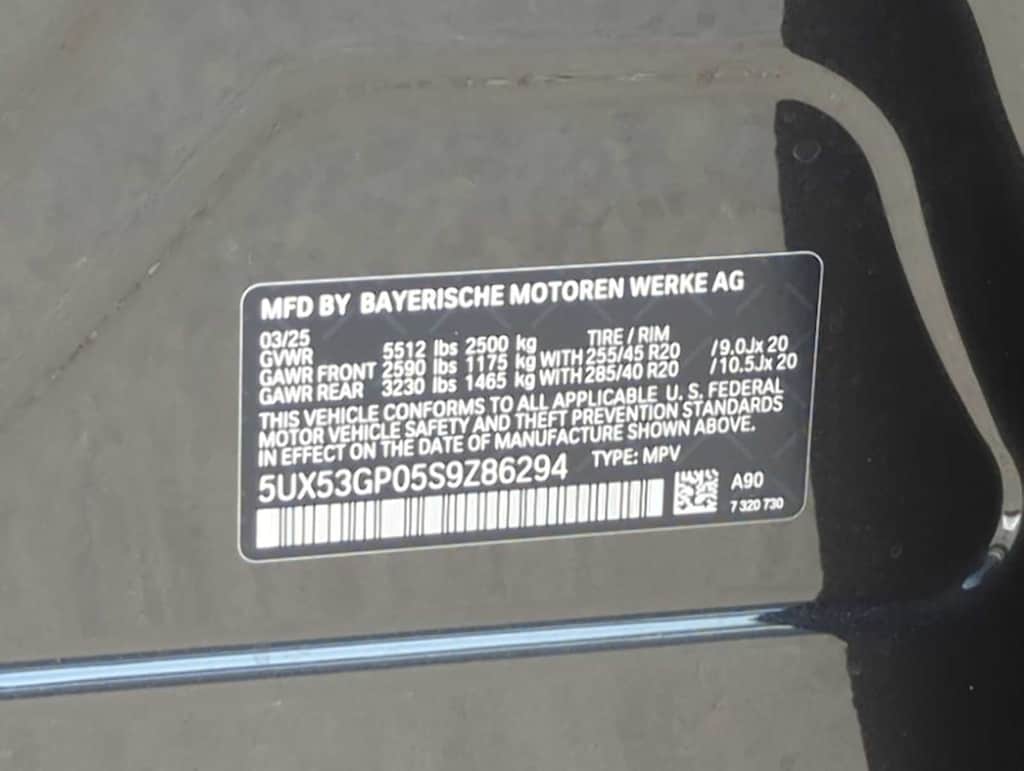 Convenience Package (Heated Steering Wheel, Remote Engine Start, and Sky Lounge Panoramic Roof), 12 Speakers, 4-Wheel Disc Brakes, ABS brakes, Air Conditioning, Alloy wheels, AM/FM Radio, AM/FM radio: SiriusXM, Auto High-beam Headlights, Auto-dimming door mirrors, Auto-dimming Rear-View mirror, Automatic temperature control, BMW TeleServices, Brake assist, Bumpers: body-color, Delay-off headlights, Driver door bin, Driver vanity mirror, Dual front impact airbags, Dual front side impact airbags, Electronic Stability Control, Emergency communication system: BMW Assist eCall, Exterior Parking Camera Rear, Four wheel independent suspension, Front anti-roll bar, Front Bucket Seats, Front Center Armrest, Front dual zone A/C, Front reading lights, Fully automatic headlights, Garage door transmitter, Heated door mirrors, Heated Front Seats, Heated front seats, Hi-Fi Sound System, Illuminated entry, Knee airbag, Low tire pressure warning, Memory seat, Navigation, Navigation system: BMW Maps Navigation, Occupant sensing airbag, Outside temperature display, Overhead airbag, Overhead console, Panic alarm, Passenger door bin, Passenger vanity mirror, Power door mirrors, Power driver seat, Power Front Seats, Power Liftgate, Power passenger seat, Power steering, Power windows, Radio data system, Rain sensing wipers, Rear anti-roll bar, Rear Climate Control Console, Rear reading lights, Rear seat center armrest, Rear window defroster, Rear window wiper, Remote keyless entry, Security system, Speed control, Speed-Sensitive Wipers, Split folding rear seat, Spoiler, Sport Seats, Sport steering wheel, Steering wheel mounted audio controls, Tachometer, Telescoping steering wheel, Tilt steering wheel, Traction control, Trip computer, Turn signal indicator mirrors, Variably intermittent wipers, Wheels: 19 x 8.5 Aero Midnight Grey Bicolor, and Wireless Device Charging.