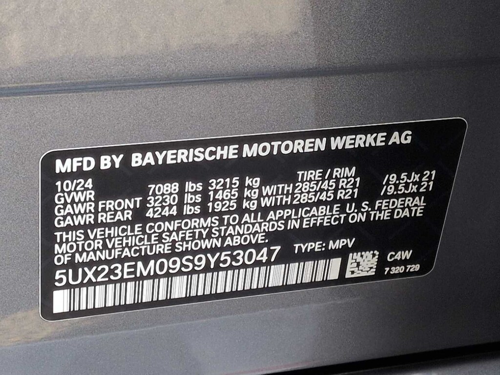 Climate Comfort Package (5-Zone Automatic Climate Control, Front and Rear Heated Seats, and Front Ventilated Seats), Connected Package Pro, Driving Assistance Professional Package (Active Cruise Control with Stop and Go, Active Driving Assistant Pro, Highway Assistant, Lane Keeping Assistant, and Traffic Jam Assistant), M Sport Package, M Sport Package Pro, M Sport Professional Package (Extended Shadowline Trim, Illuminated Kidney Grille, M Sport Brakes with Black Calipers, and M Sport Exhaust System), Parking Assistance Package (Drive Recorder, Parking Assistant Professional, and Parking View with 3D View (Surround View)), Premium Package (Gesture Control, Harman/Kardon Surround Sound System, Rear Electric Side Window Shades, and Soft-Close Automatic Doors), Enhanced Premium Sound System, Navigation system: BMW Maps Navigation, 3.64 Axle Ratio, 3rd row seats: split-bench, 4-Wheel Disc Brakes, ABS brakes, Adaptive suspension, Aerodynamic Kit, Air Conditioning, Alloy wheels, AM/FM radio: SiriusXM with 360L, AM/FM Stereo, Anthracite Alcantara Headliner, Apple CarPlay and Android Auto Compatibility, Apple CarPlay Compatibility, Auto High-beam Headlights, Auto tilt-away steering wheel, Auto-dimming door mirrors, Auto-dimming Rear-View mirror, Auto-leveling suspension, Automatic temperature control, BMW Assist